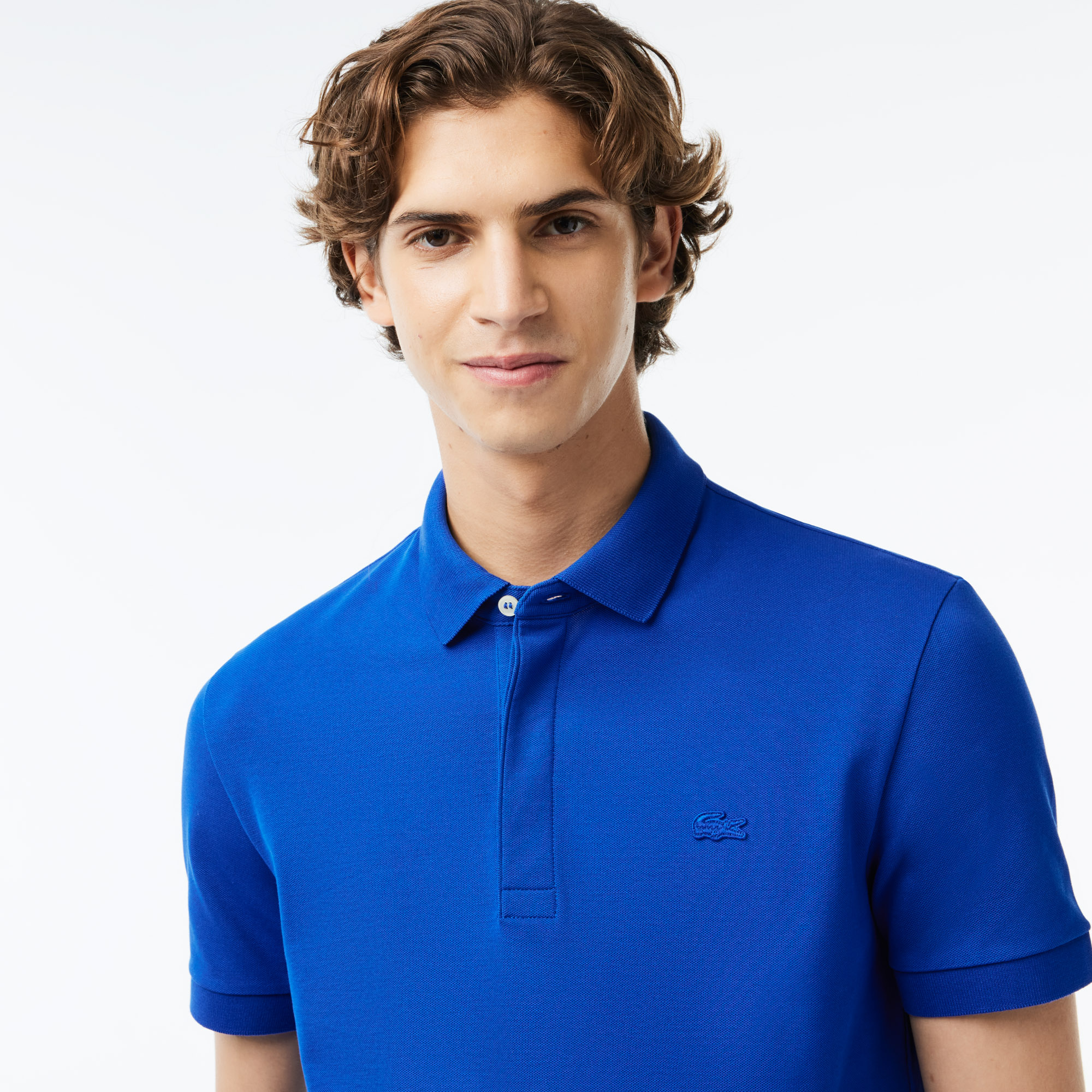 Фирменный трикотаж Lacoste Piqué \воротник и манжеты в рубчик\прямой крой\логотип на груди в тон изделия\материал: 94% хлопок 6% эластан\рост модели 186 см, размер одежды 4-m