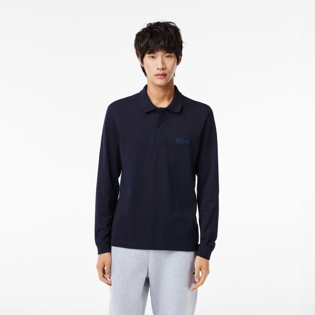 Воротник-поло на пуговицах;\Длинные рукава;\Хлопок piqué;\Большой крокодил в тон изделия на груди;\Логотип сзади\Материал: 100% хлопок