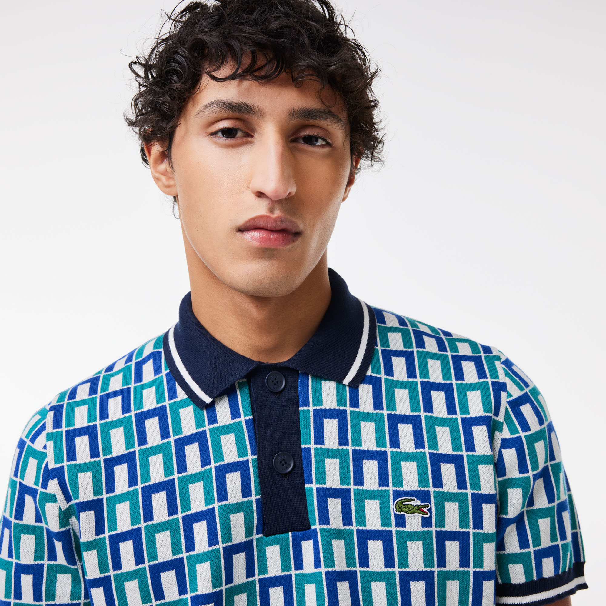 Воротник-поло\Монограмма по всему изделию\Контрастный воротник и манжеты\Логотип на груди\Материал: 100% органический хлопок\Рост модели 189 см, размер одежды 4-M