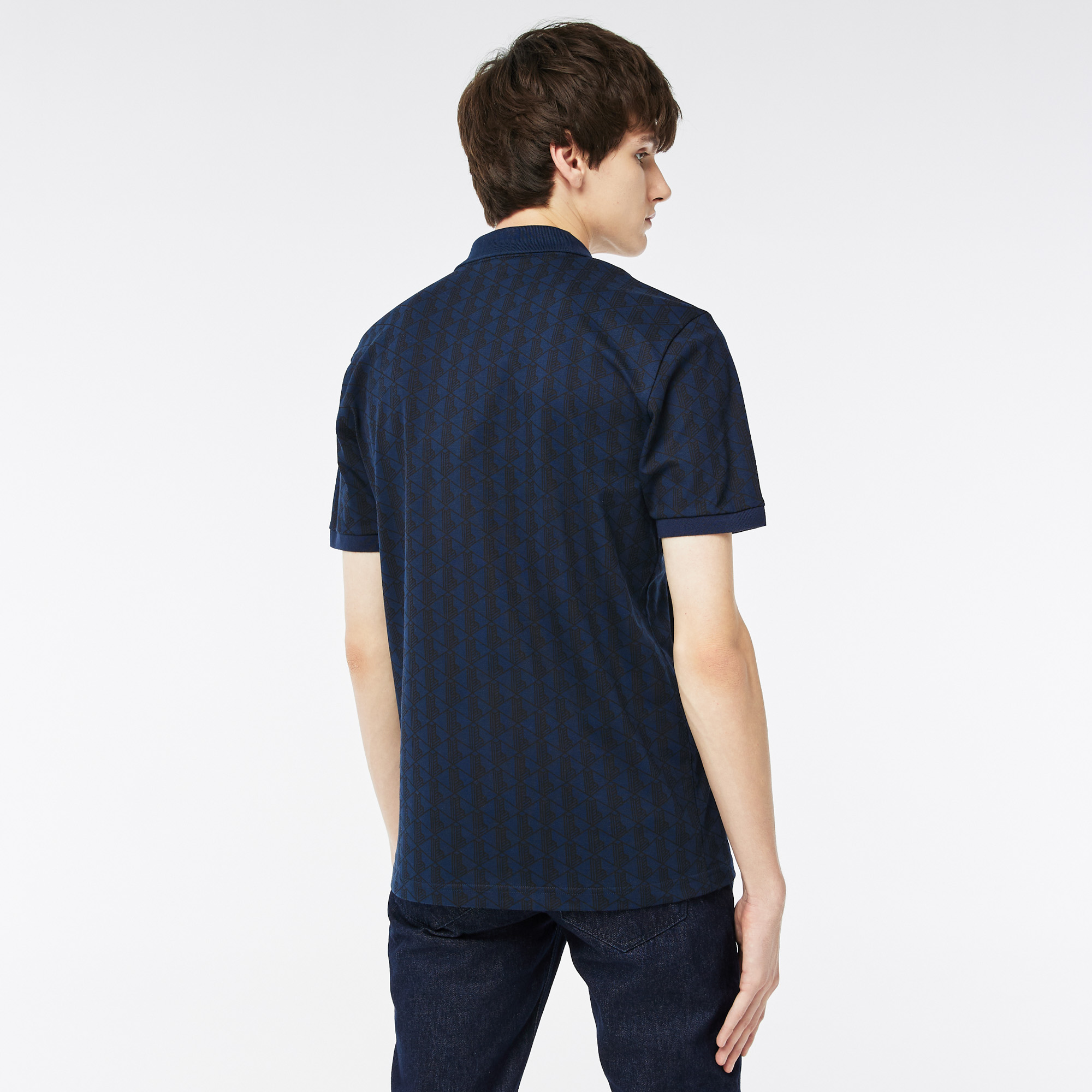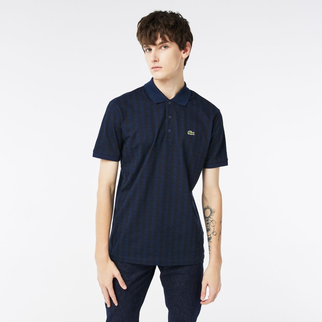 Воротник-поло на пуговицах;\Короткие рукава;\Монограмма по всему изделию;\Логотип на груди\Материал: 94% хлопок 6% эластан