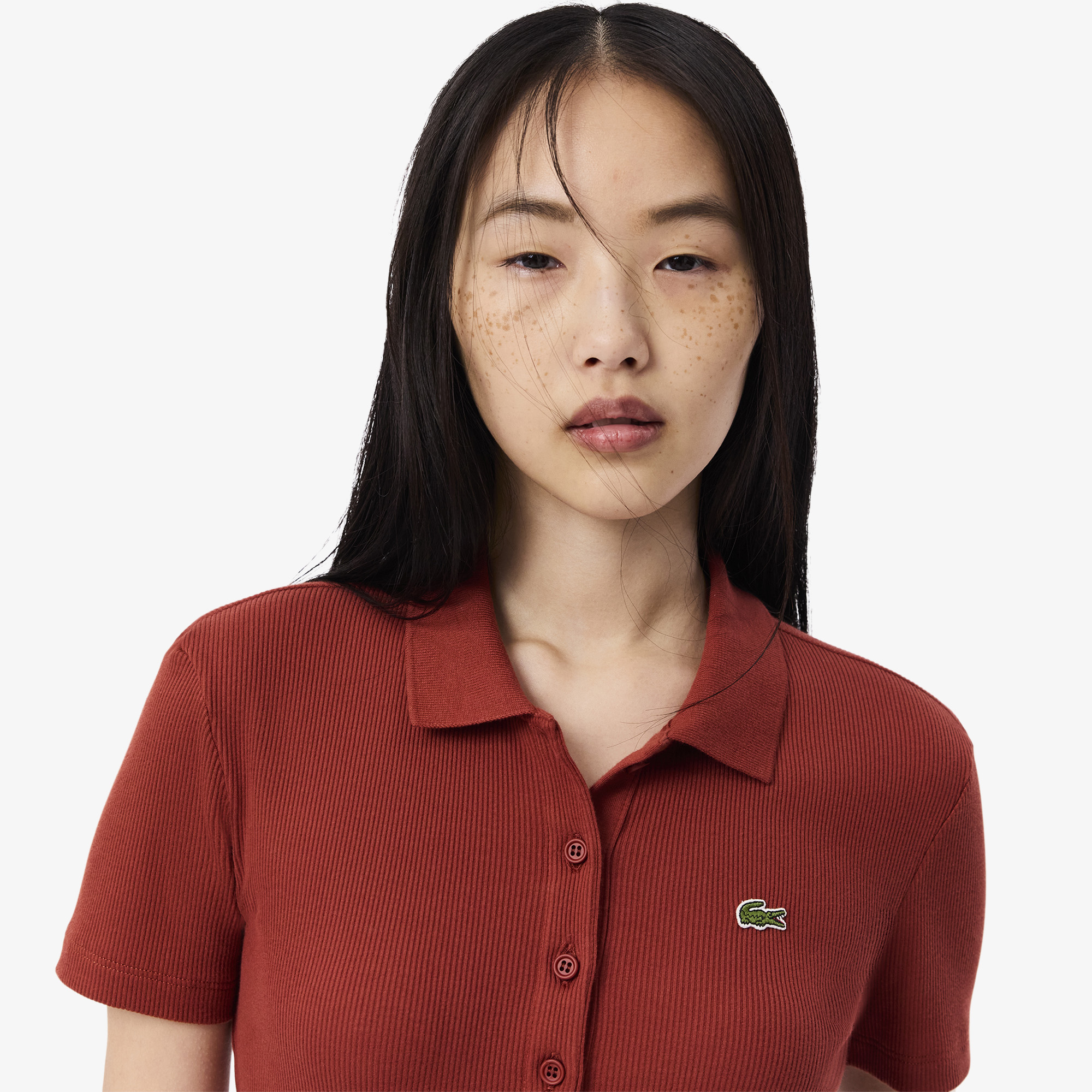 Рубашка поло из хлопка Slim Fit L.12.D \ Органический хлопок в рубчик \ Приталенный крой \Воротник-поло с планкой на пуговицах тон в тон\Вышитый логотип Lacoste на груди\Материал: 100% органический хлопок\Рост модели 180 см, размер одежды 36