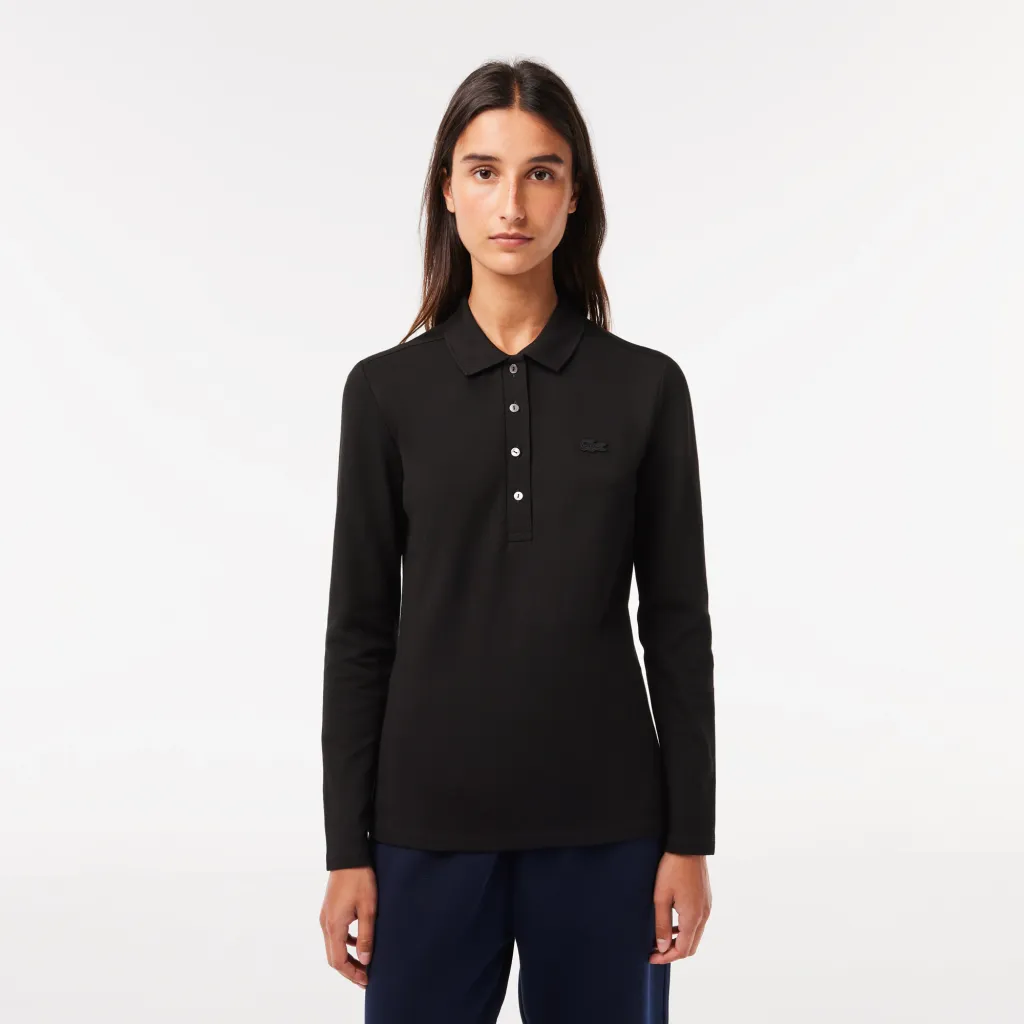 Рубашка-поло облегающий крой L.12.D из эластичного Пике \ Рубашка-поло из эластичного хлопка piqué \ Воротник-поло в рубчик на четырех пуговицах \ Приталенный крой \ Пуговицы из натурального перламутра \ Вышитый логотип тон в тон на груди \ Воротник-поло