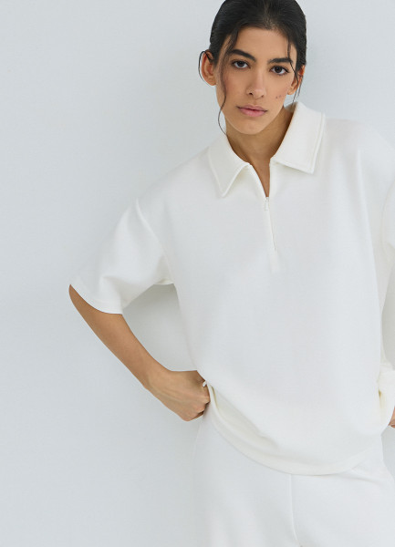 Поло с воротником на молнии, Бежевый