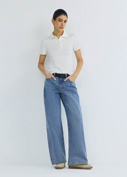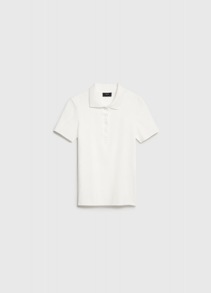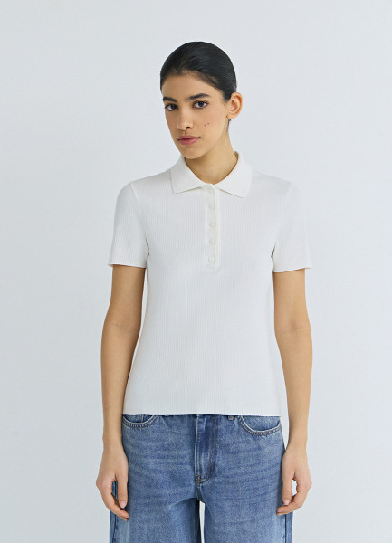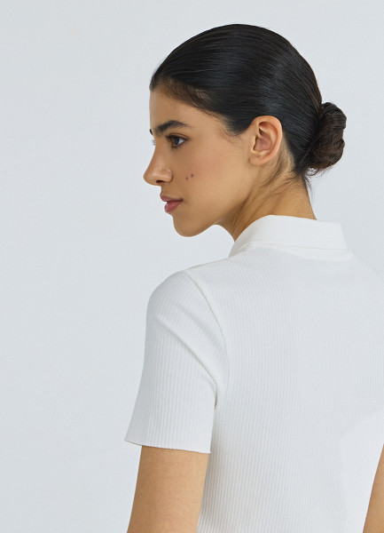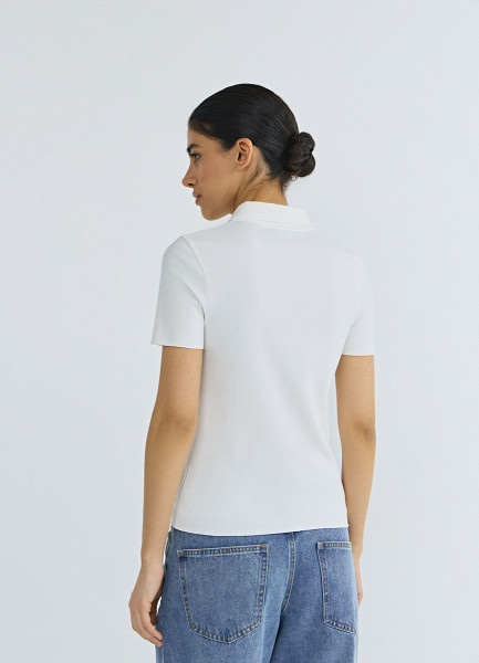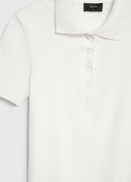 Поло в рубчик с коротким рукавом, Белый