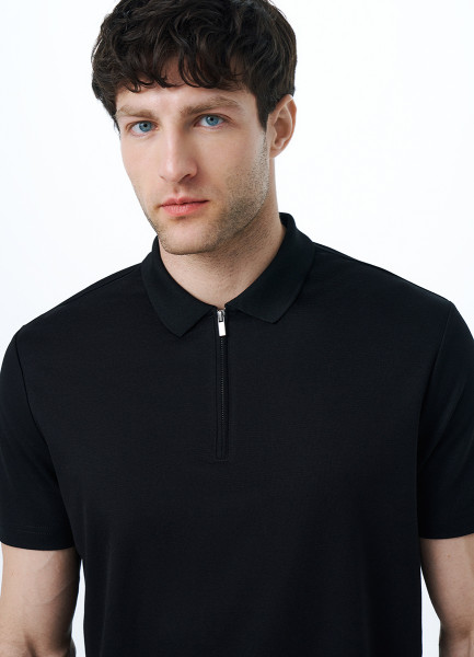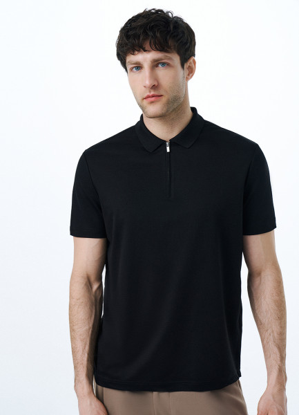 Поло из технологичной ткани с молнией, Черный