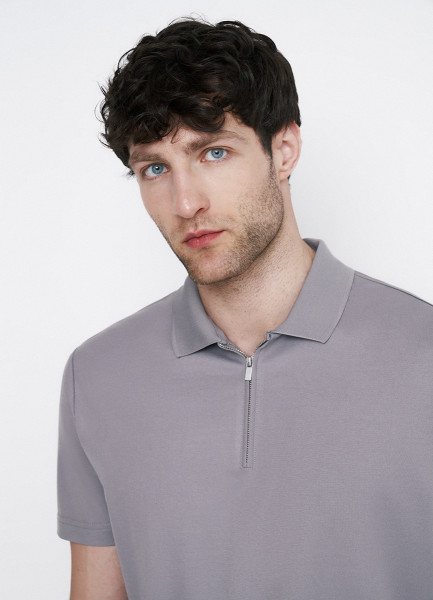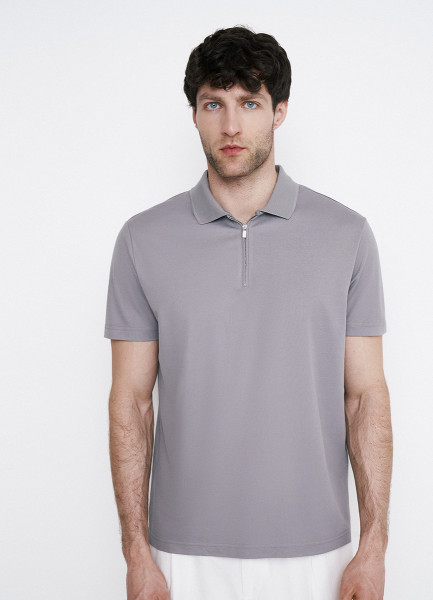 Поло из технологичной ткани с молнией, Серый