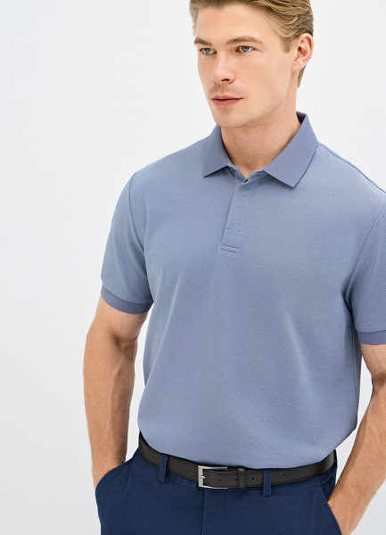 Поло из текстурированной ткани, Синий