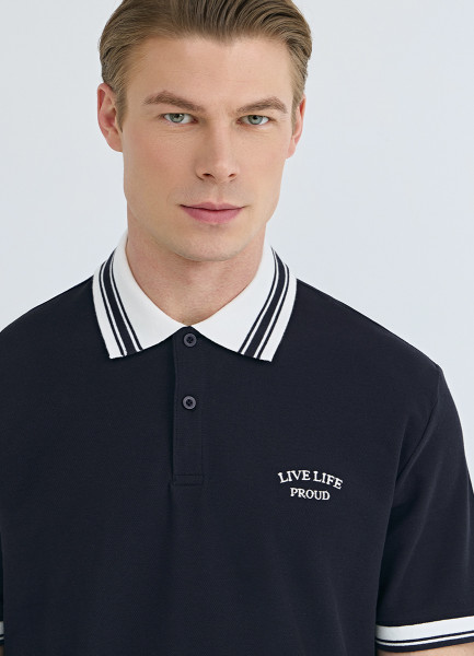Поло из текстурированной ткани, Синий