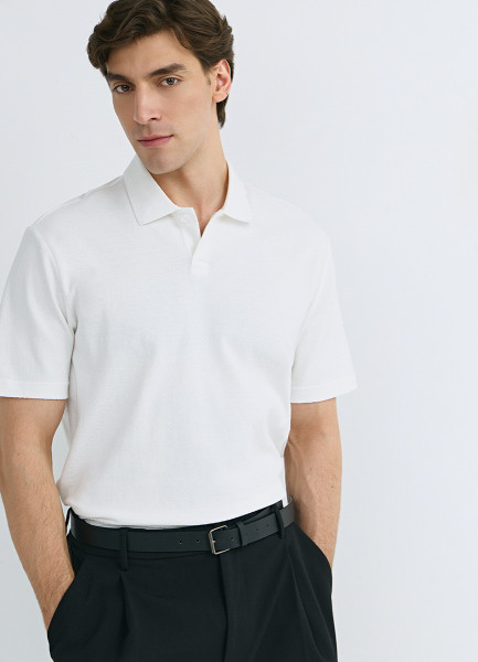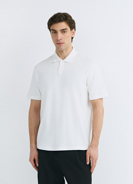 Поло из текстурной ткани, Белый