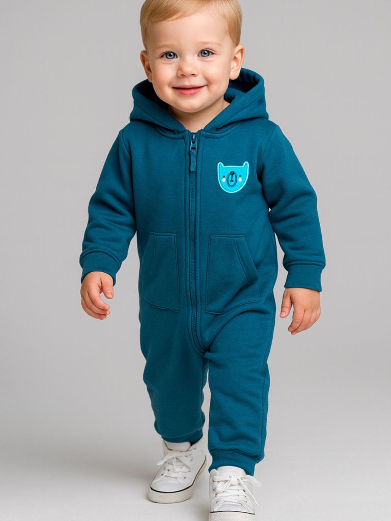 Модный бирюзовый комбинезон для мальчика из футера с петлёй от PlayToday — это удобная и стильная одежда для детского сада, игр дома и активных прогулок.