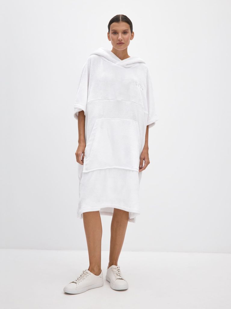 Мягкий двухсторонний материал Wellsoft заберет излишки влаги с вашего тела и не даст замерзнуть на ветру. Пончо с широкими проймами рукавов, чтобы легко можно было запустить руки под него и переодеть мокрый гидрокостюм. Карман-кенгуру согреет руки, а глубокий двухслойный капюшон прикроет мокрые волосы.