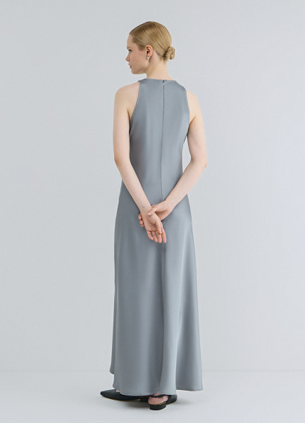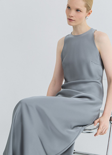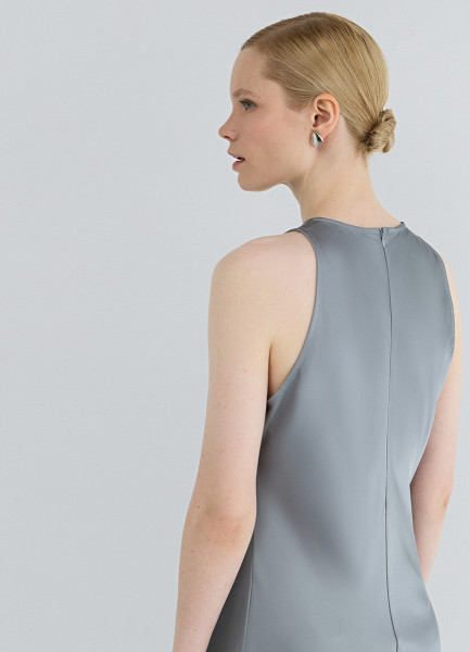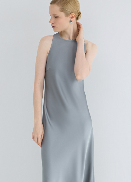 Сатиновое платье с американской проймой, Серый