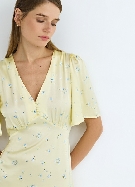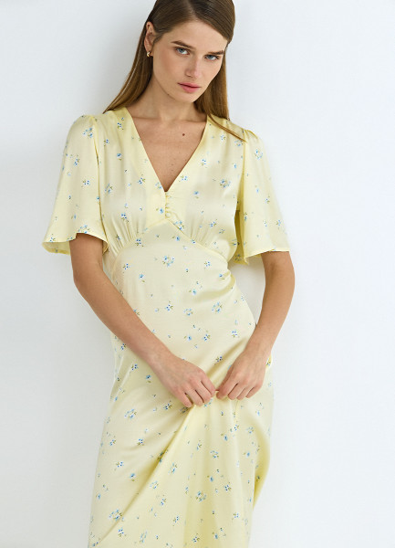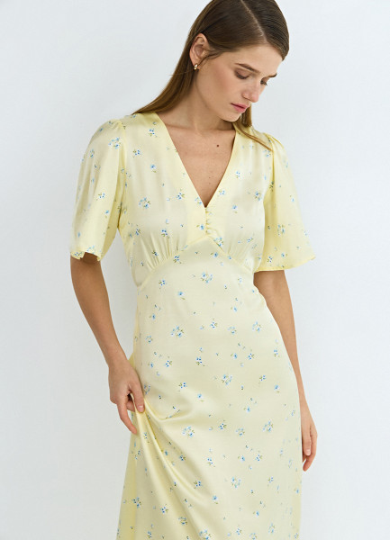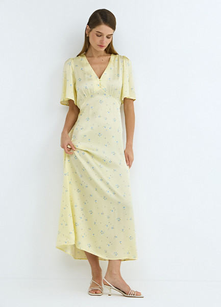 Платье миди с принтом, Желтый