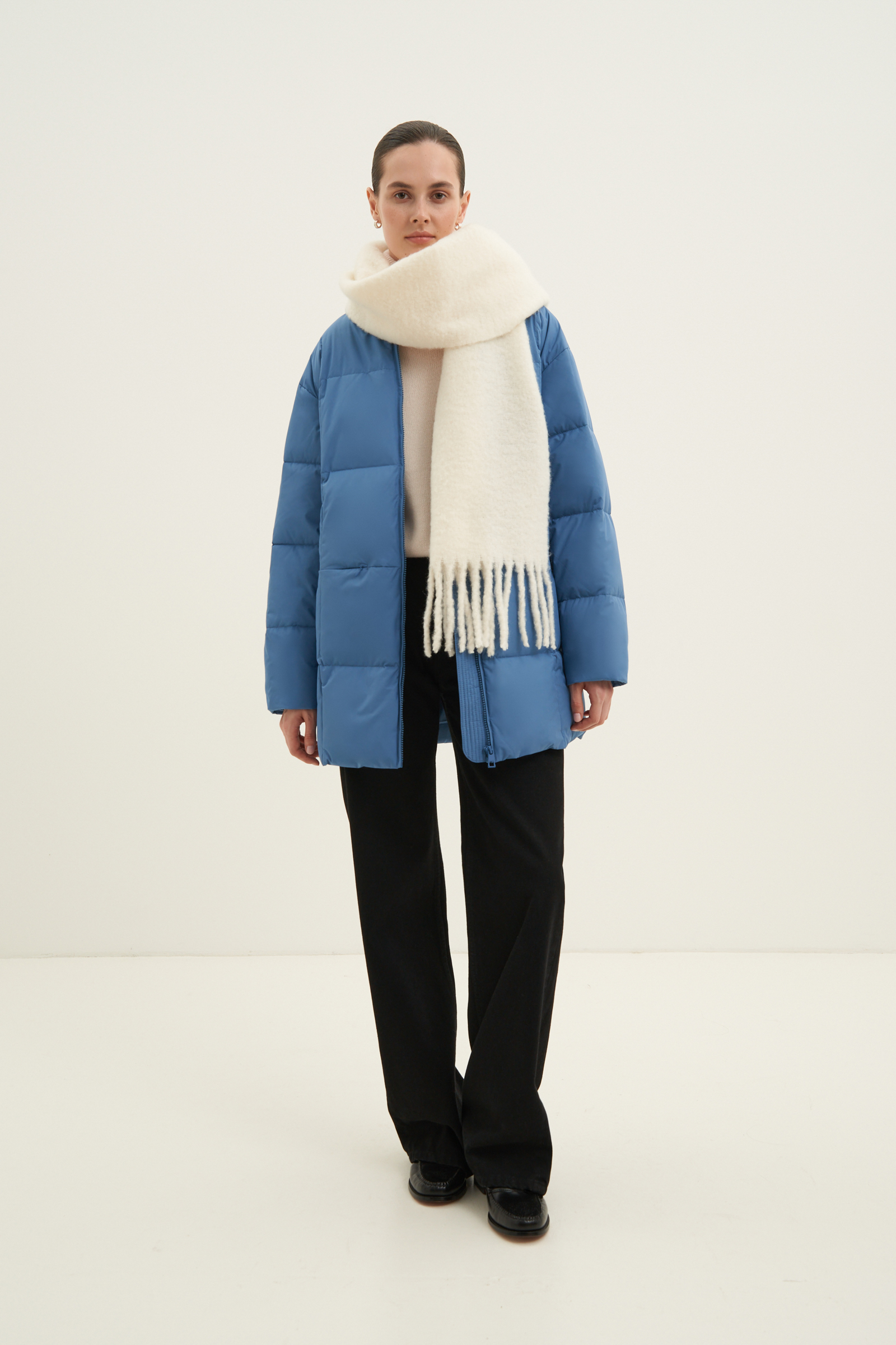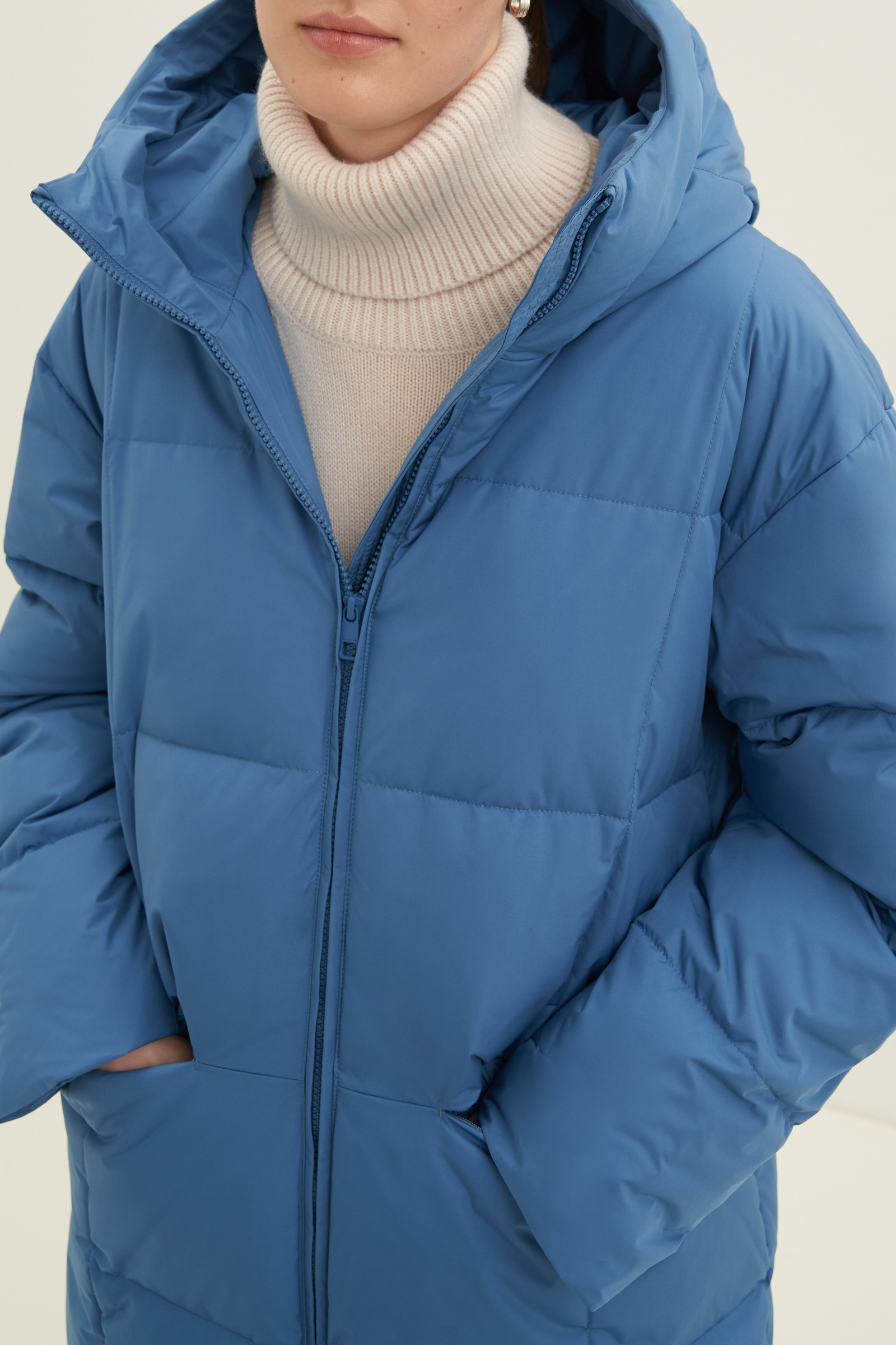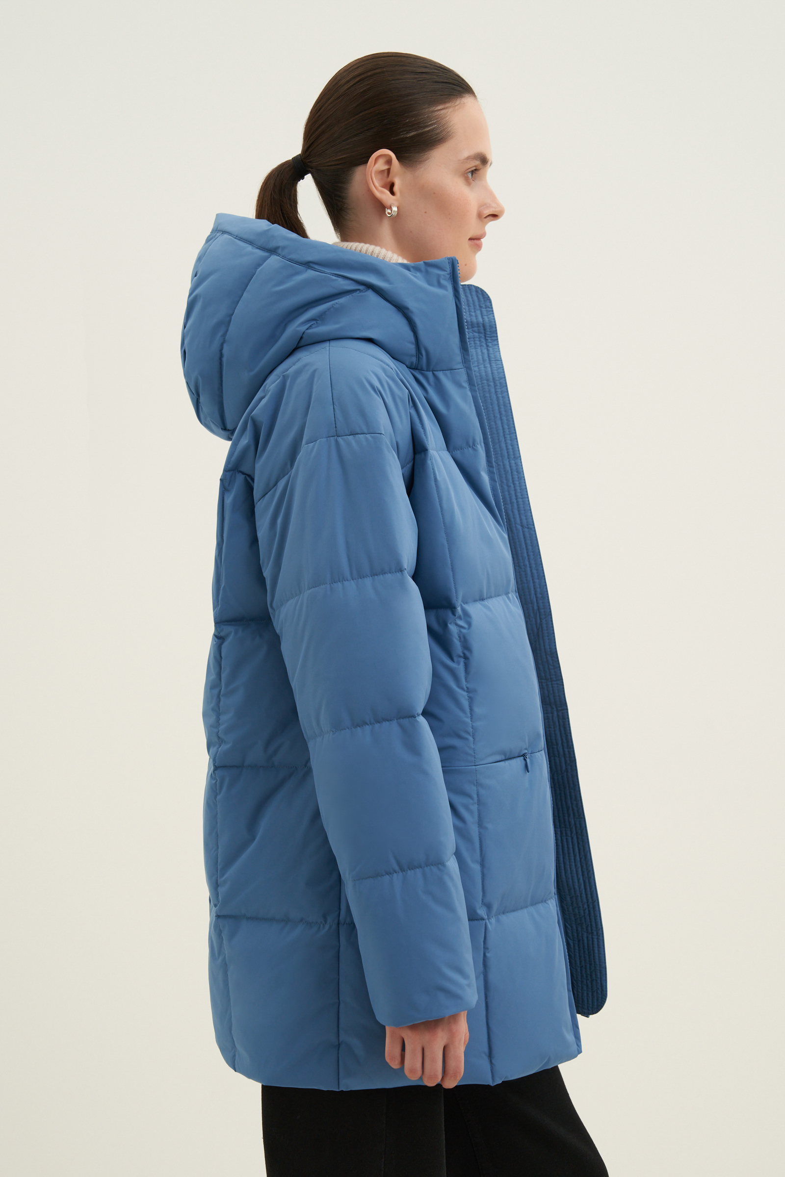 Пуховое пальто прямого силуэта