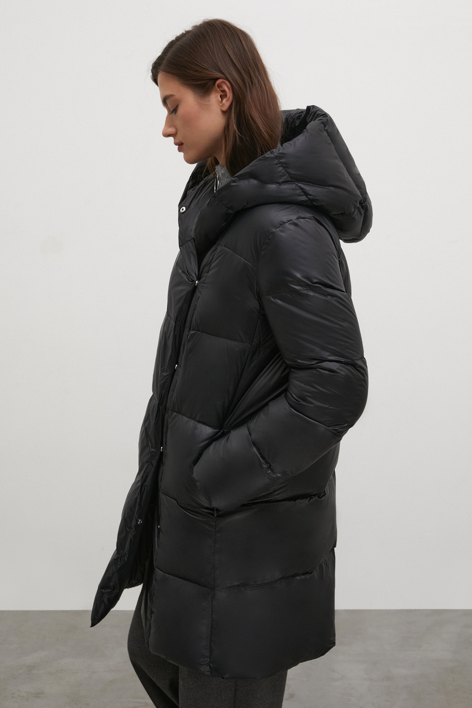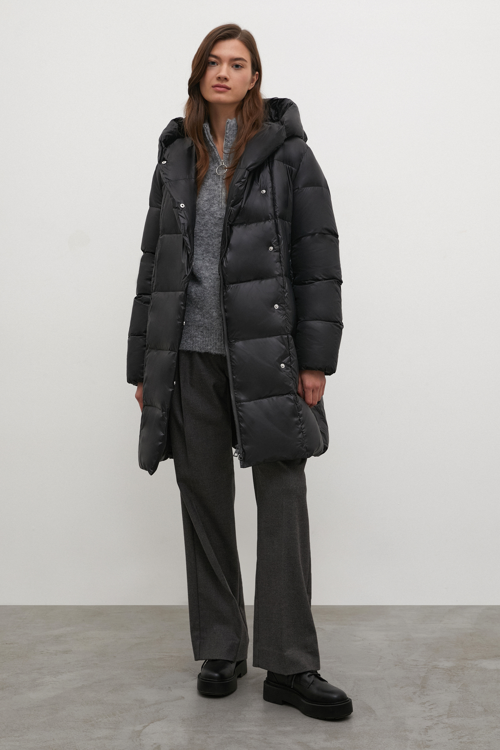 Пуховое пальто прямого силуэта