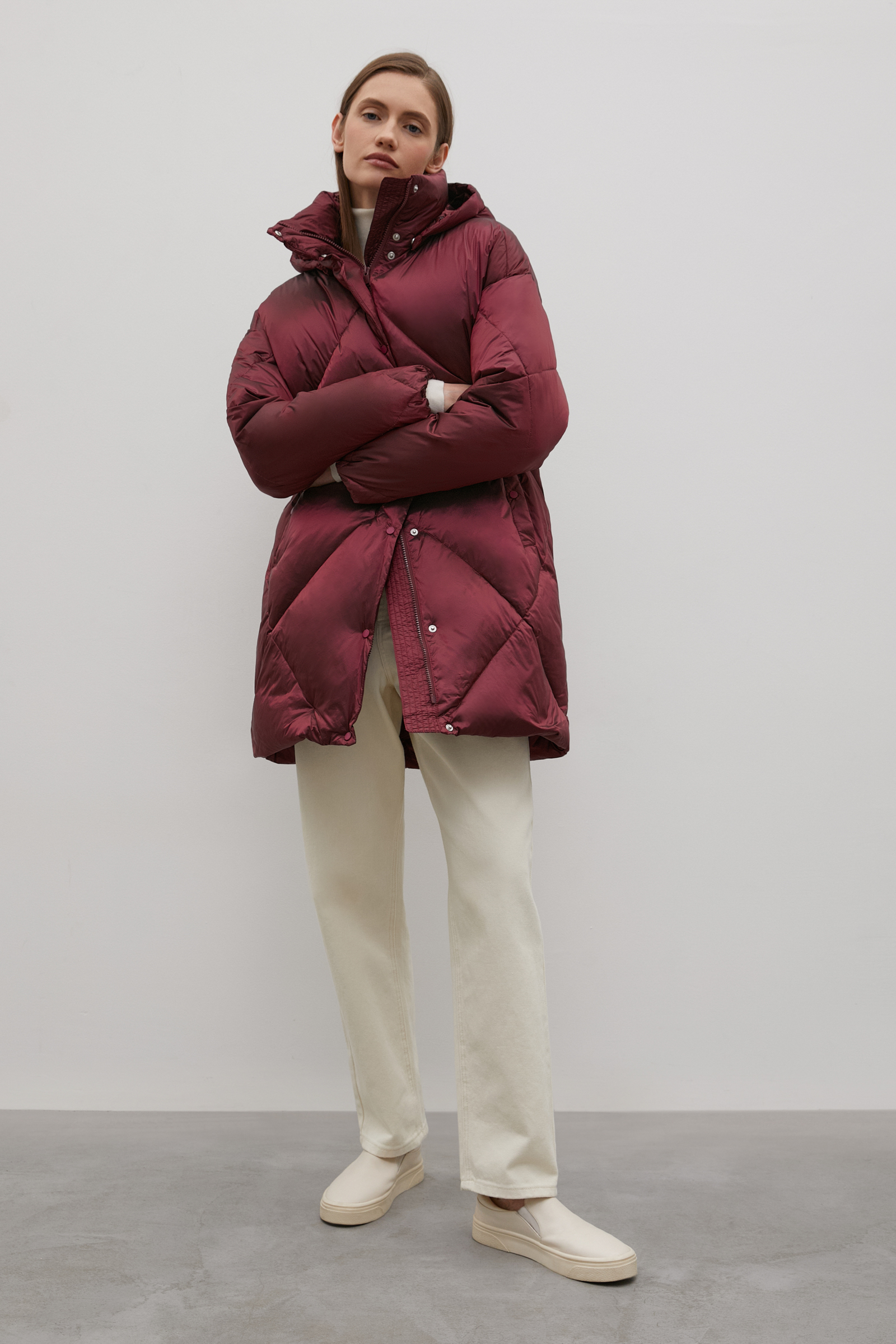 Пуховое пальто прямого силуэта