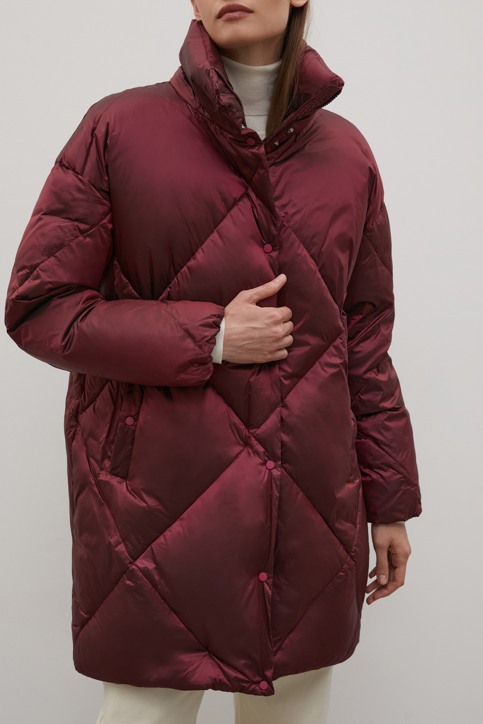 Пуховик с воротником-стойкой