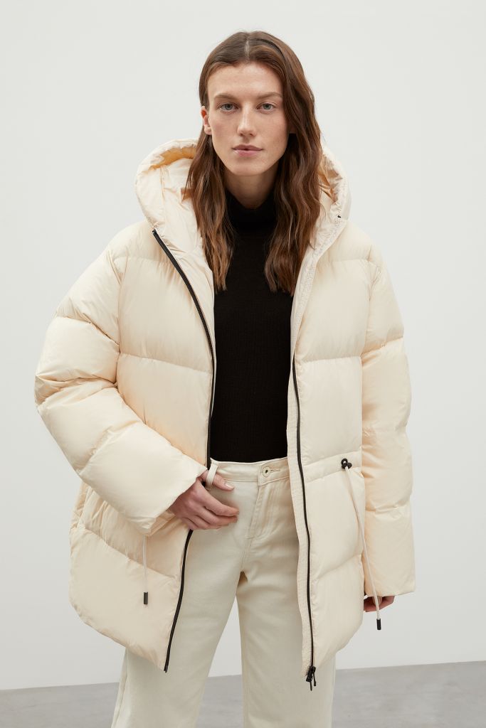 Пуховик с капюшоном и талией на кулиске