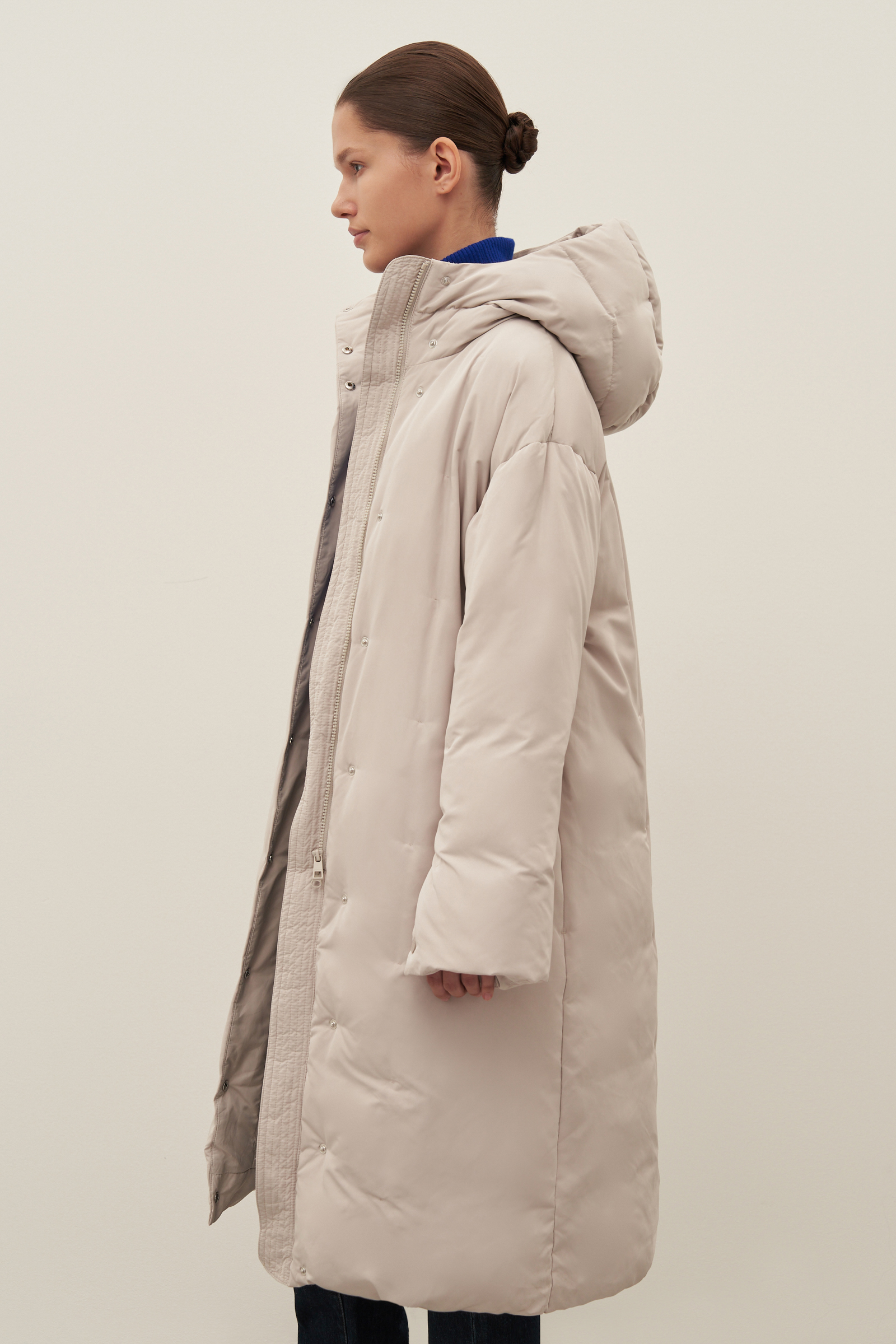Пуховое пальто прямого силуэта