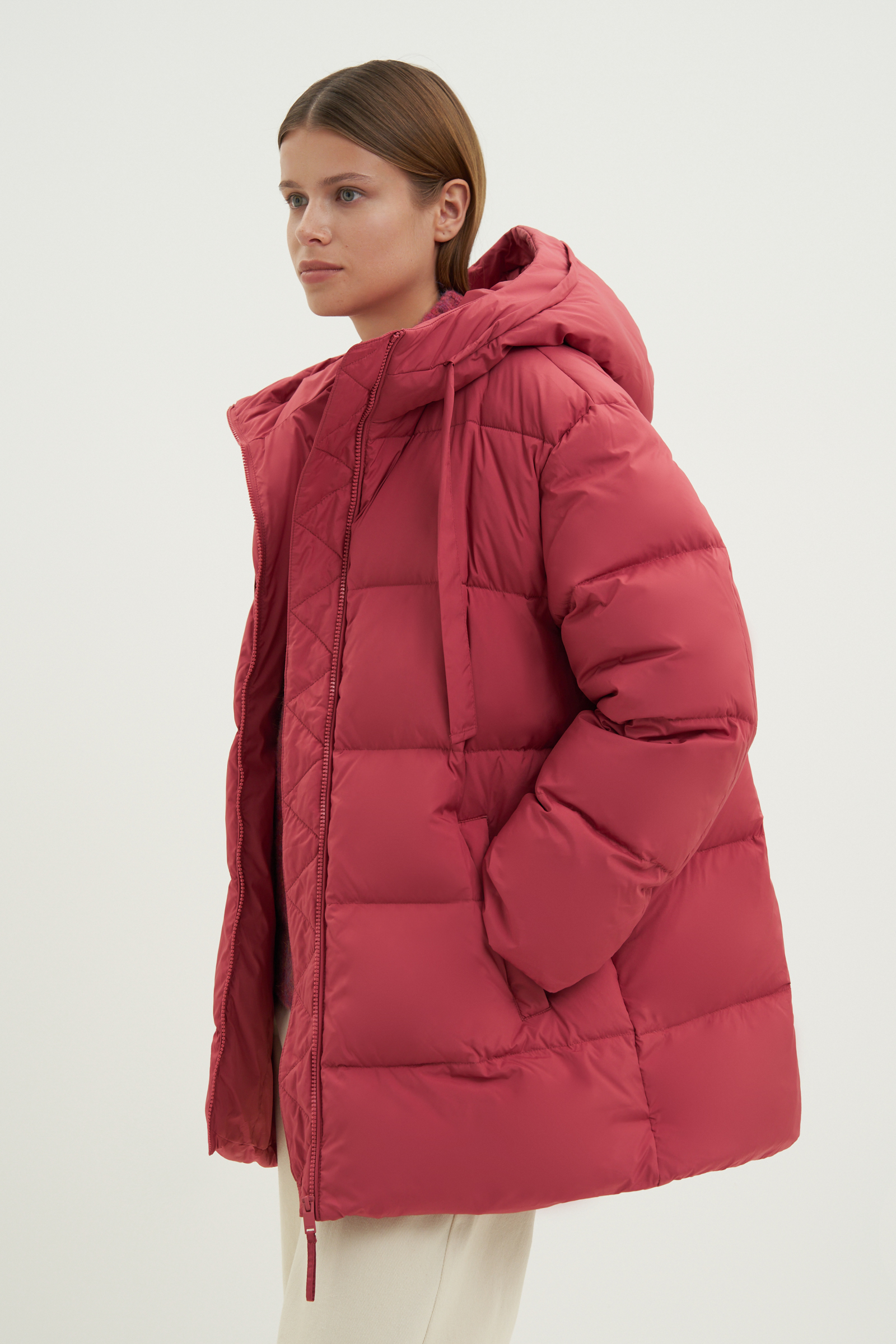 Стеганое пуховое пальто силуэта oversize