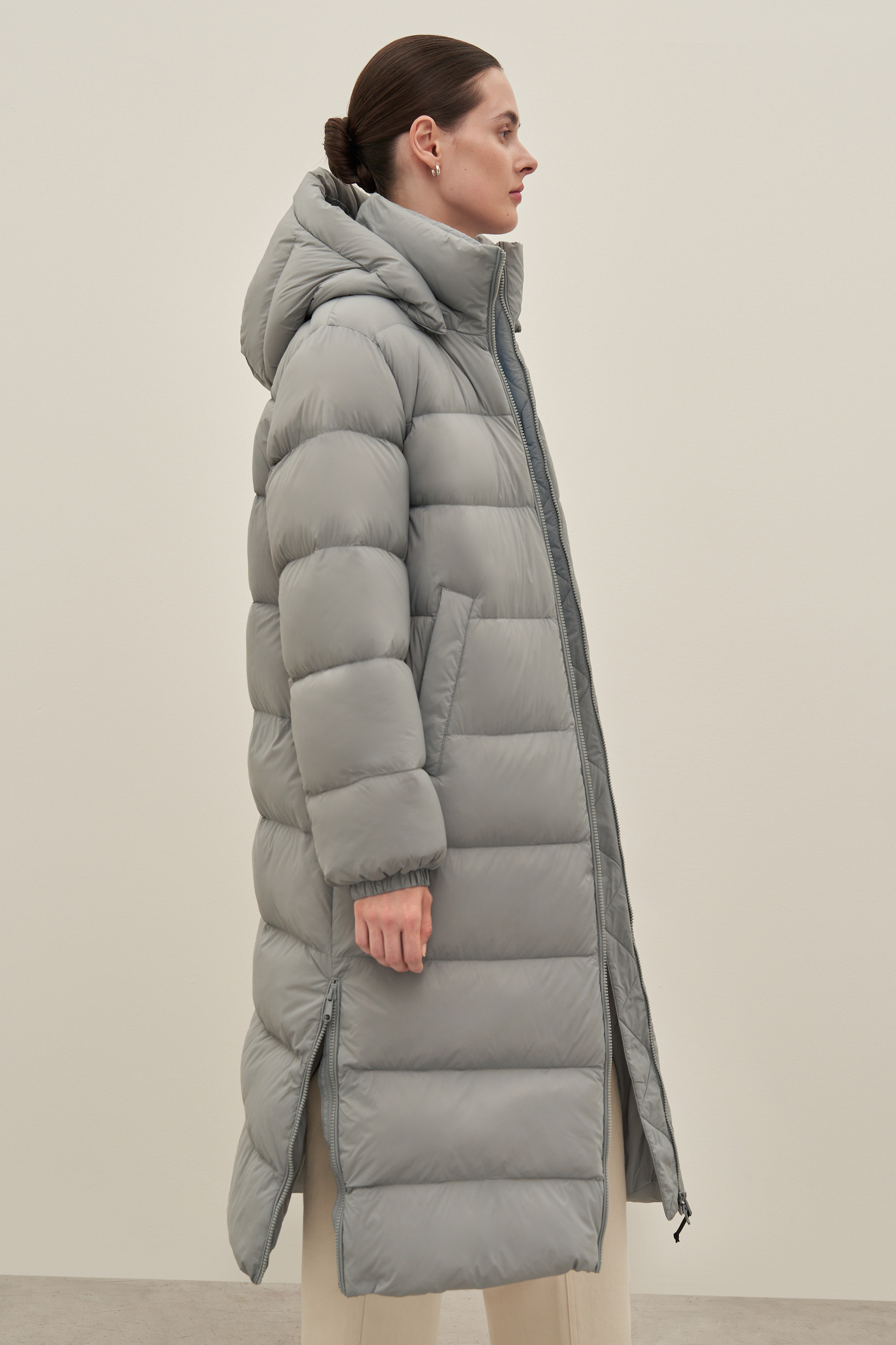 Пуховое пальто прямого силуэта