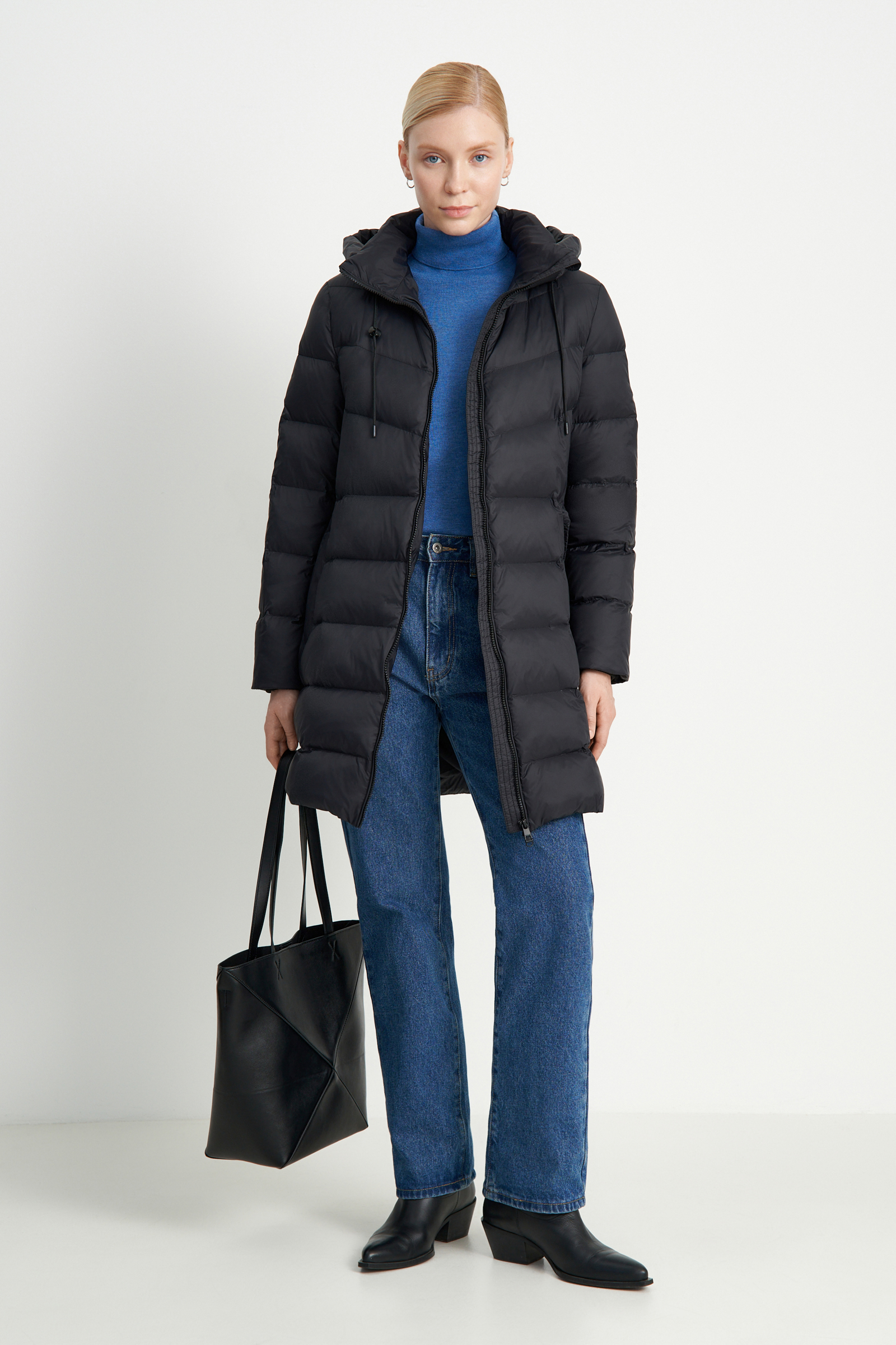 Пуховое пальто прямого силуэта