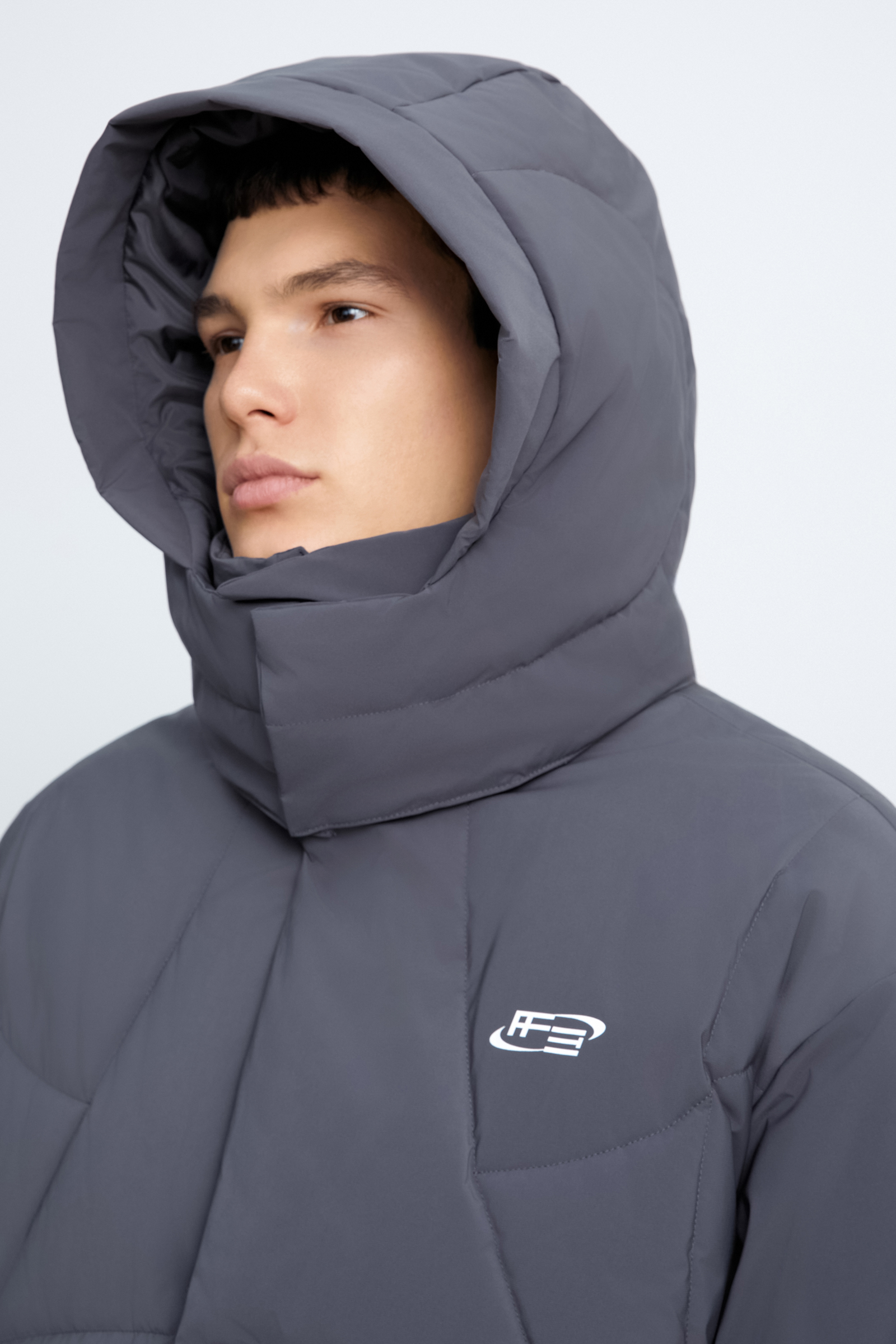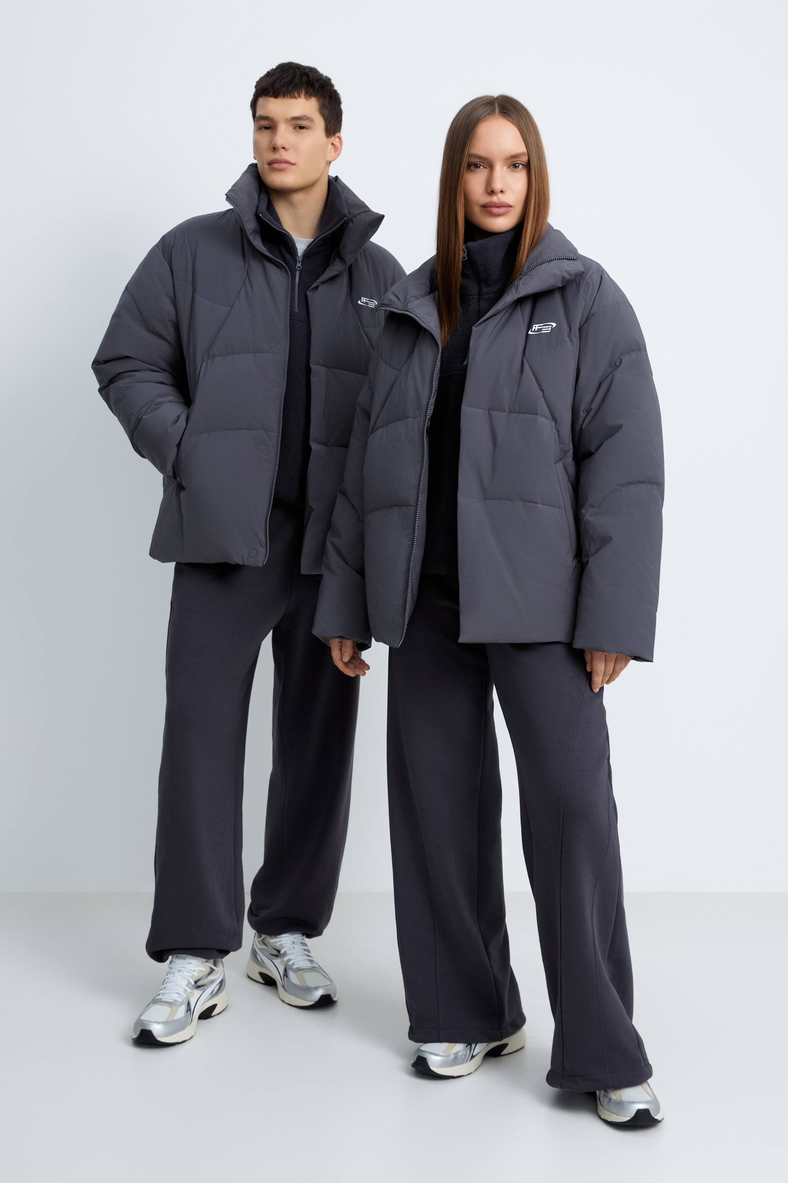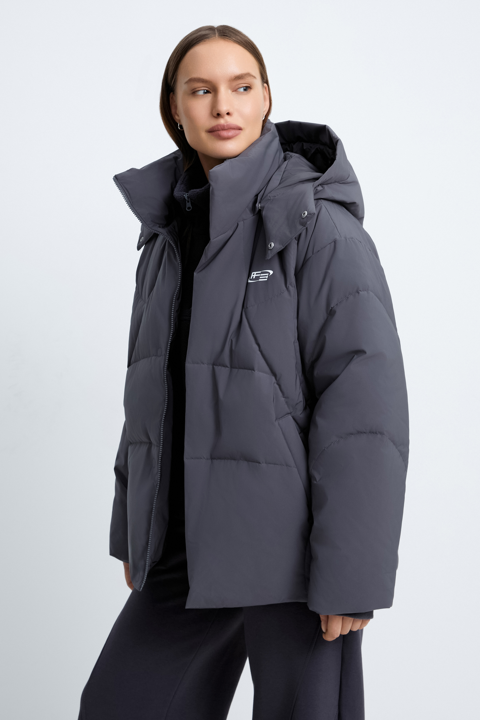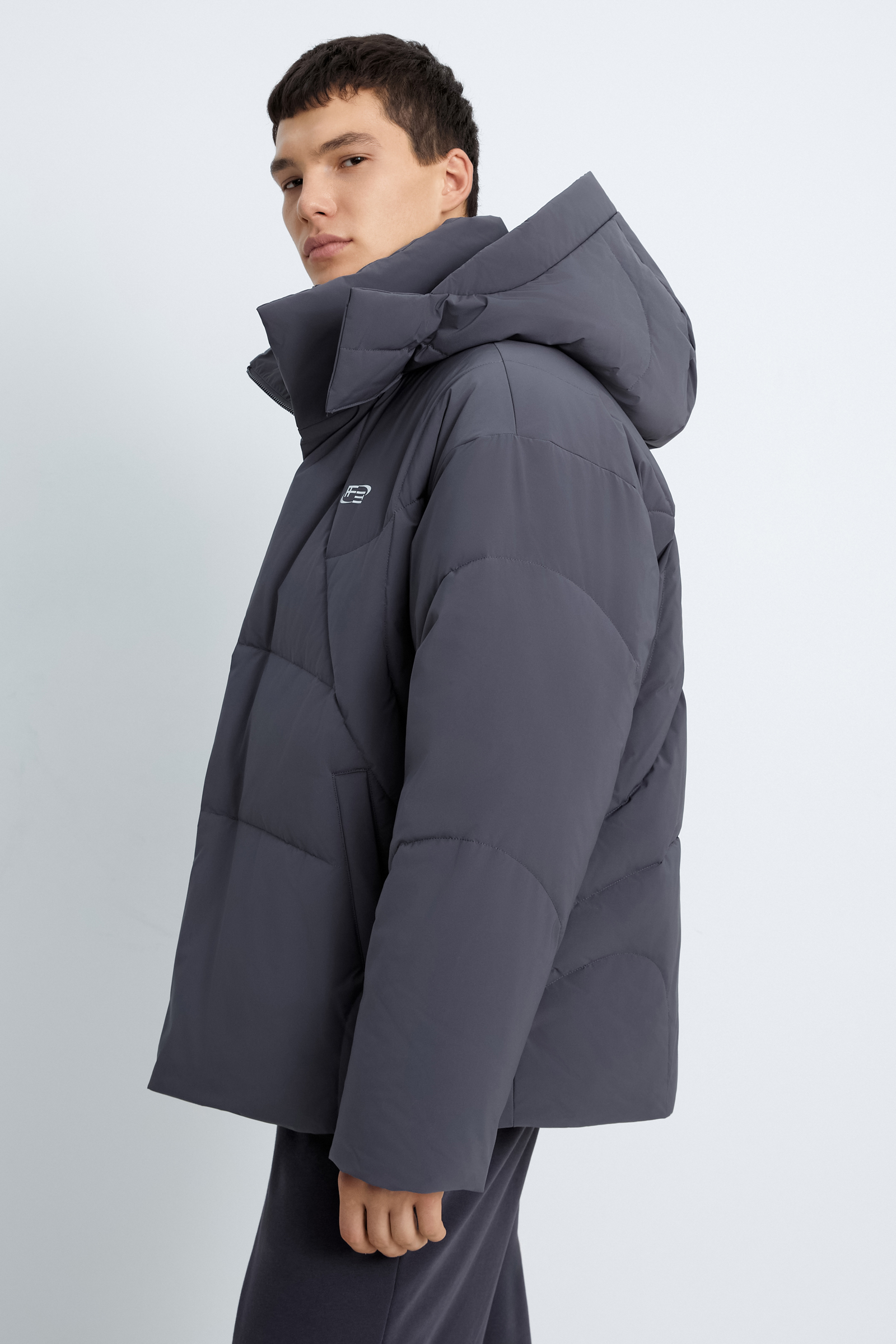Пуховик с воротником-стойкой из коллаборации с maneken