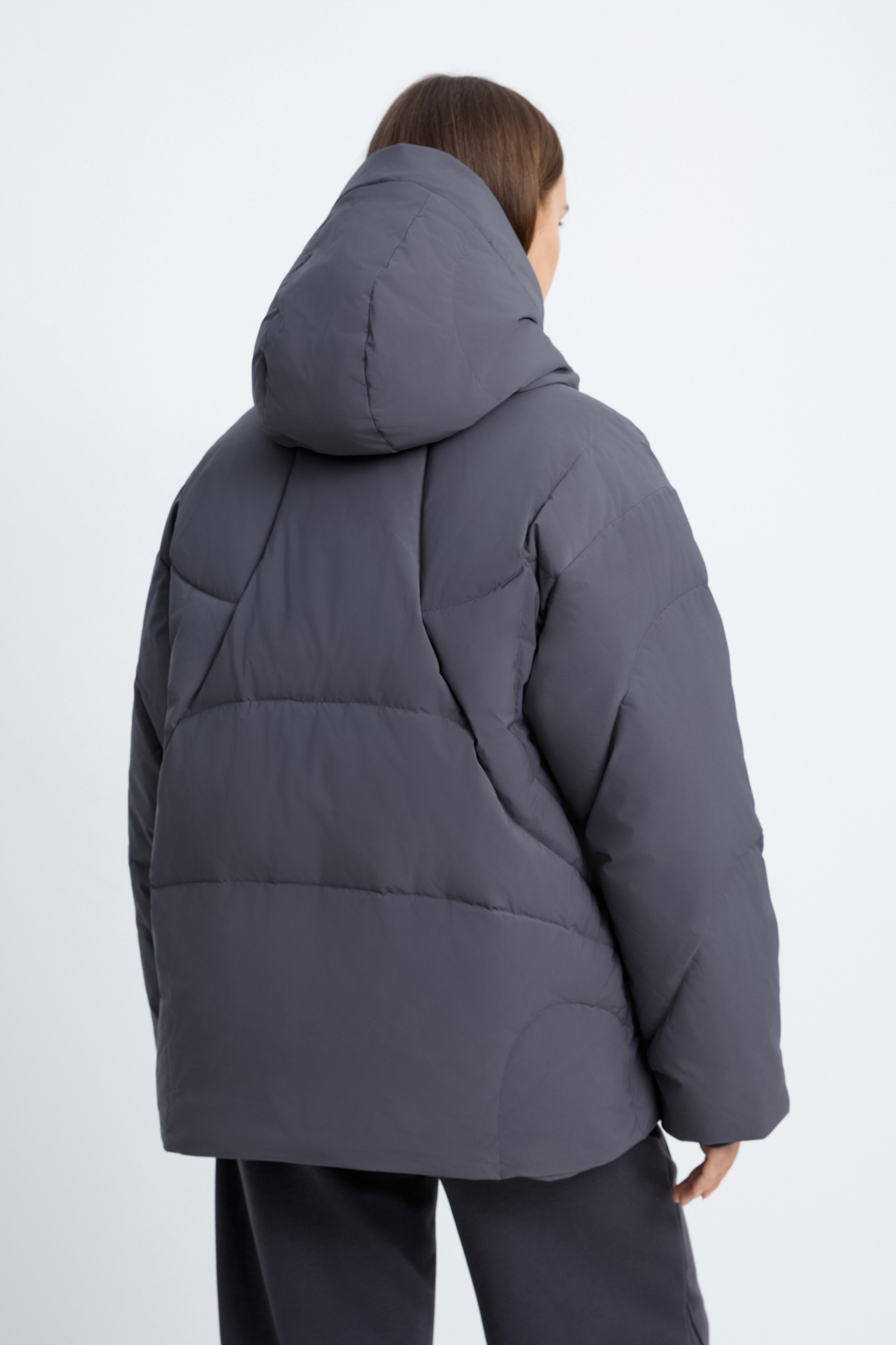 Стеганый пуховик с капюшоном