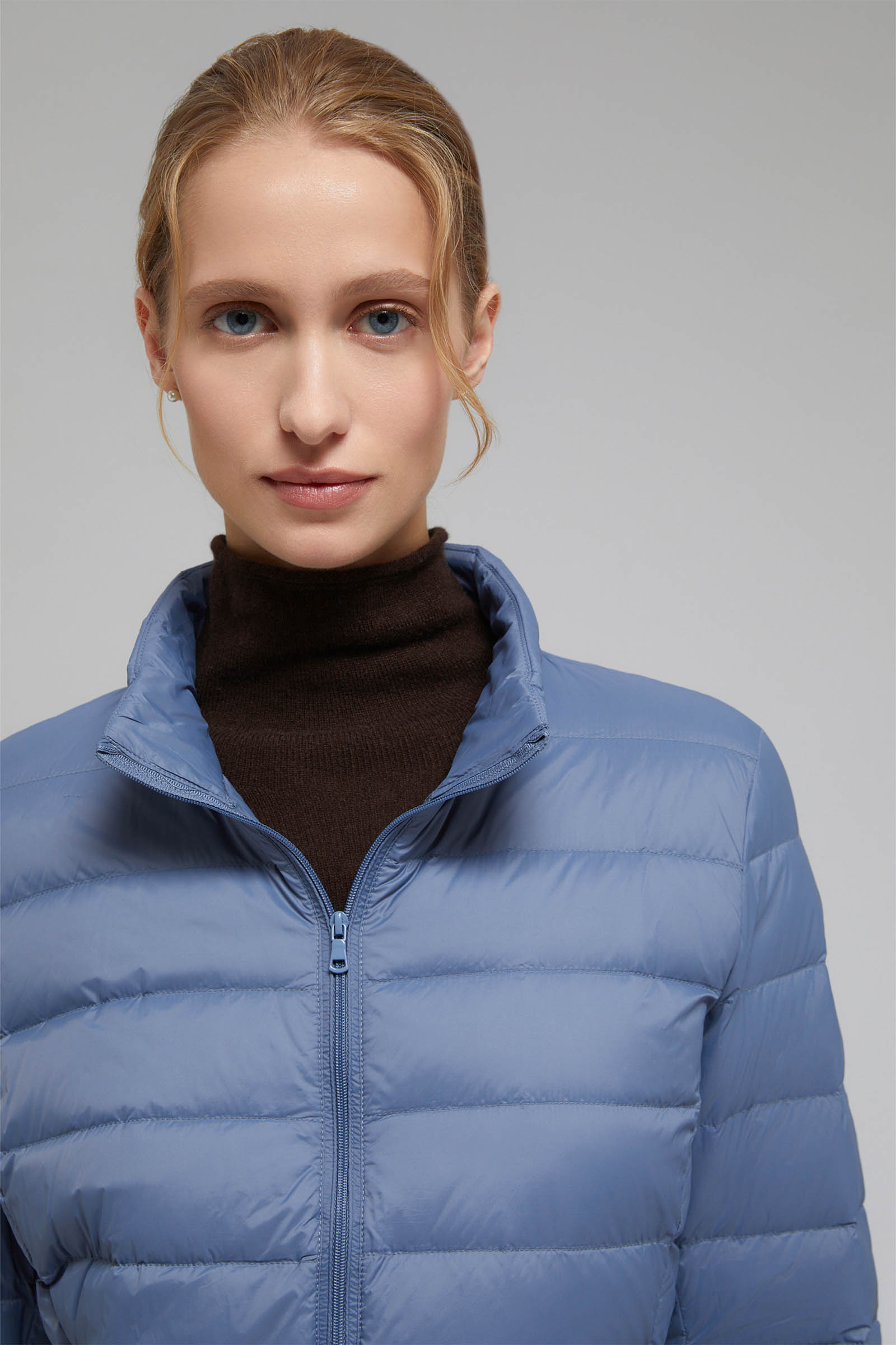 Пуховик с воротником-стойкой
