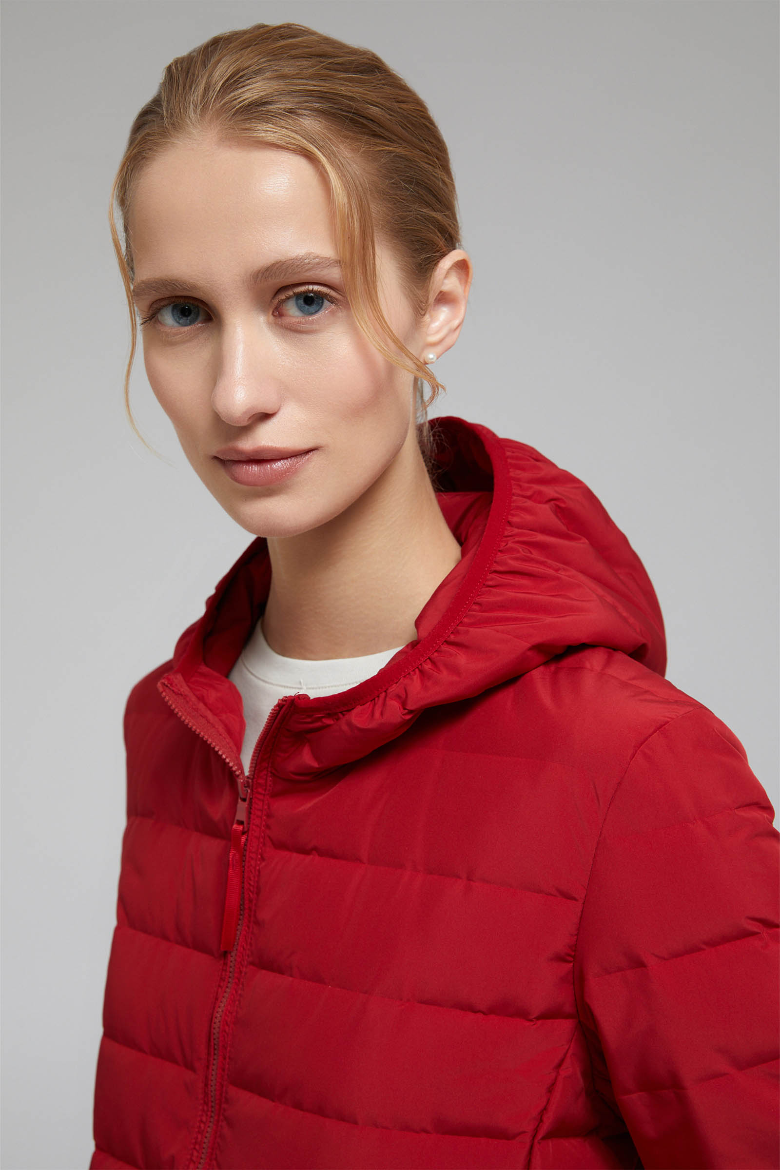 Пуховое стеганое пальто с капюшоном