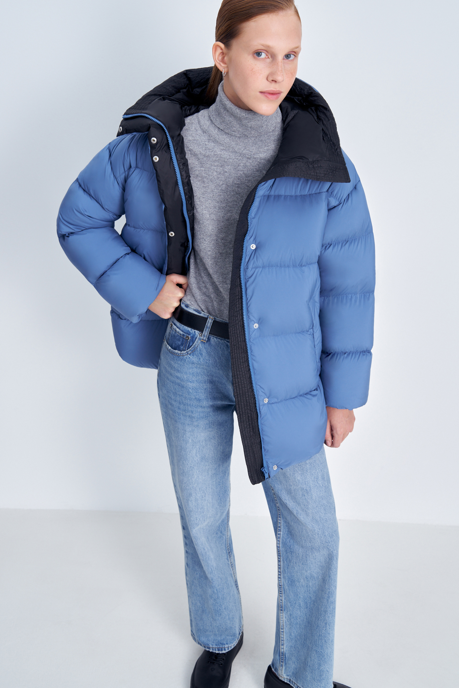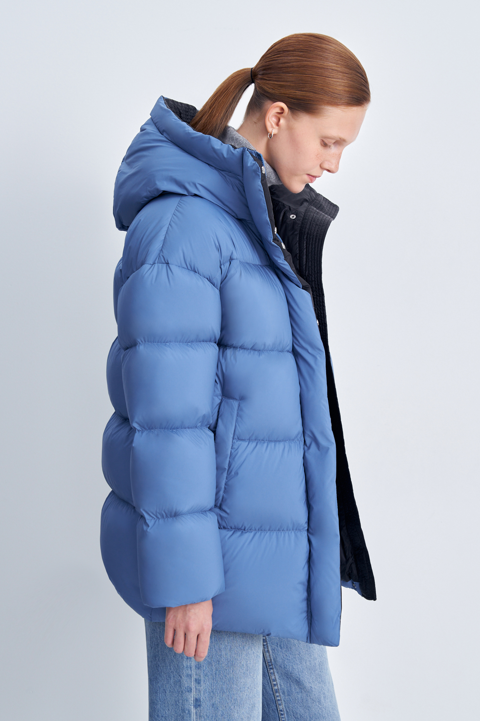 Стеганое пуховое пальто силуэта oversize