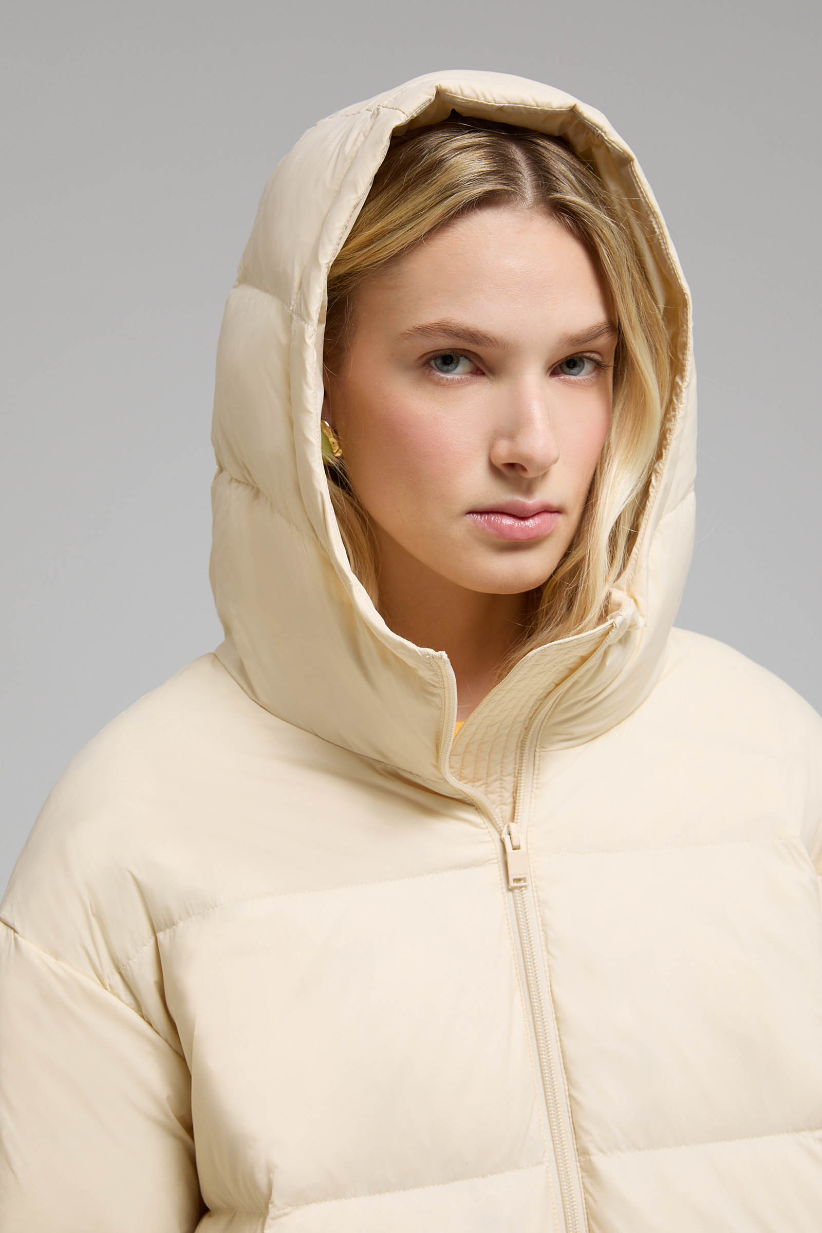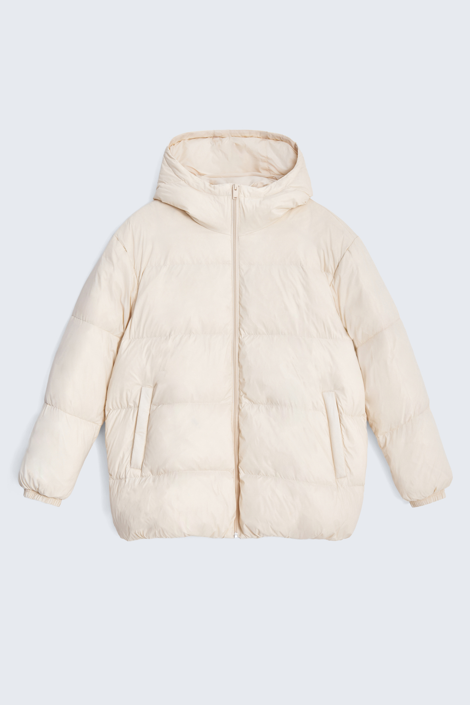 Удлиненный пуховик с капюшоном