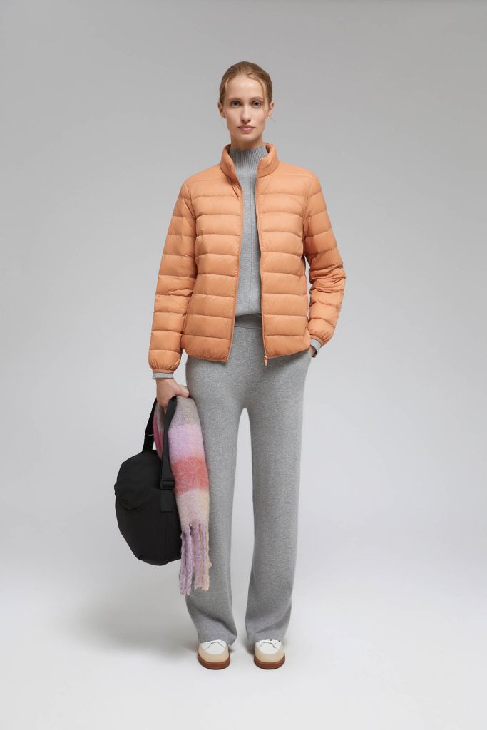 Стеганый пуховик с воротником-стойкой