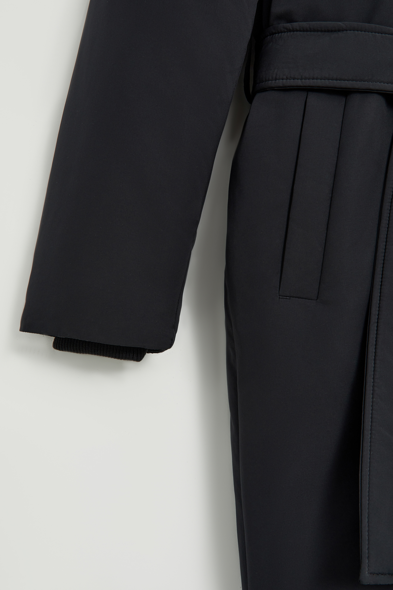 Пуховое стеганое пальто с поясом