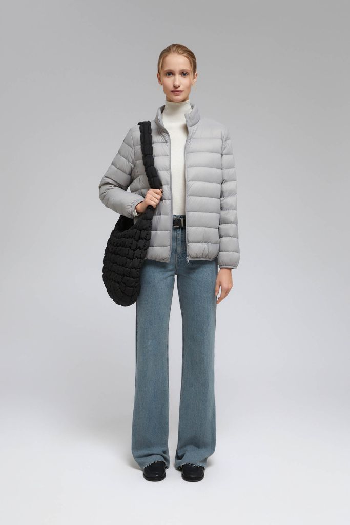 Стеганый пуховик с воротником-стойкой
