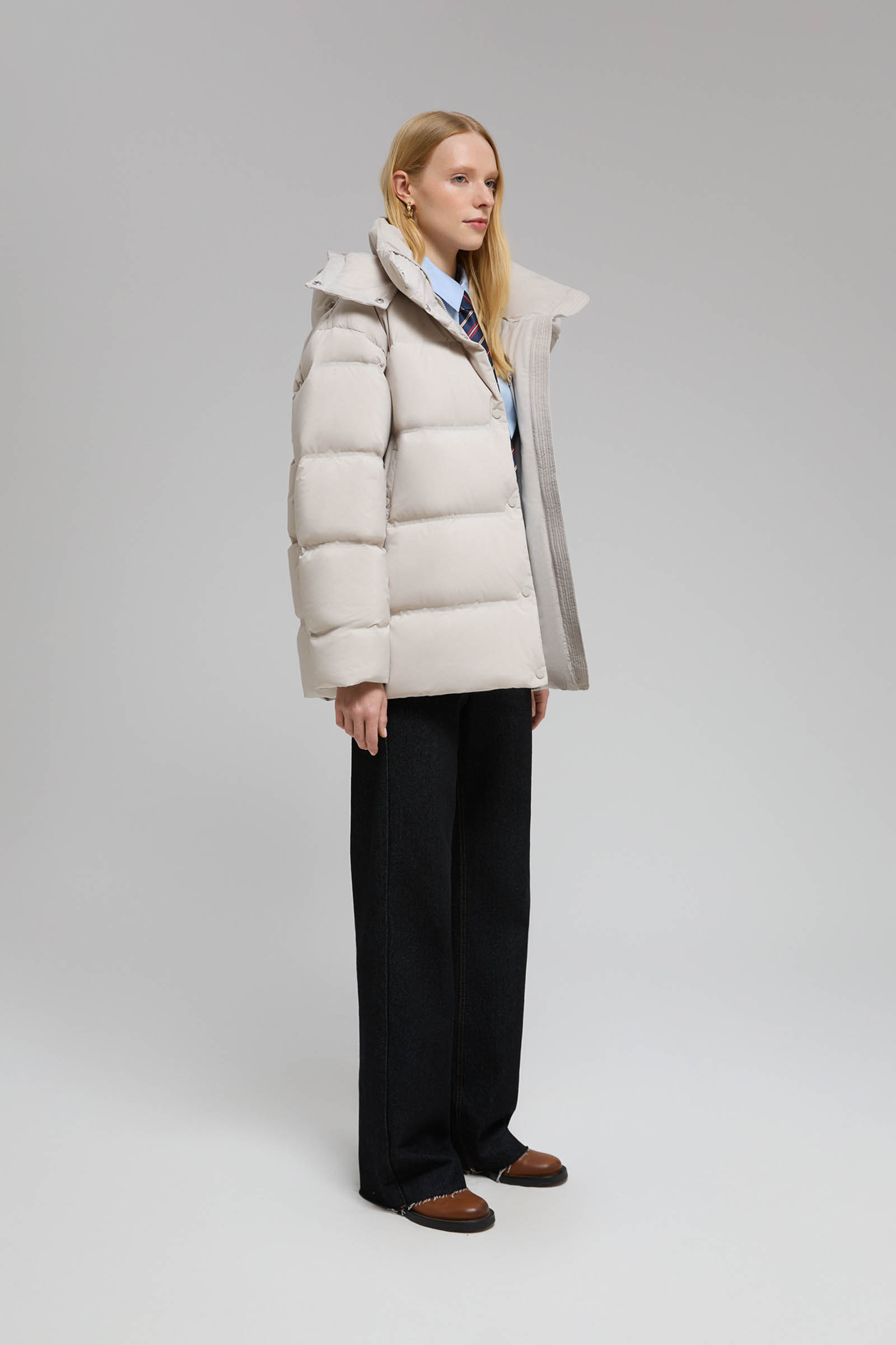 Пуховик с воротником-стойкой