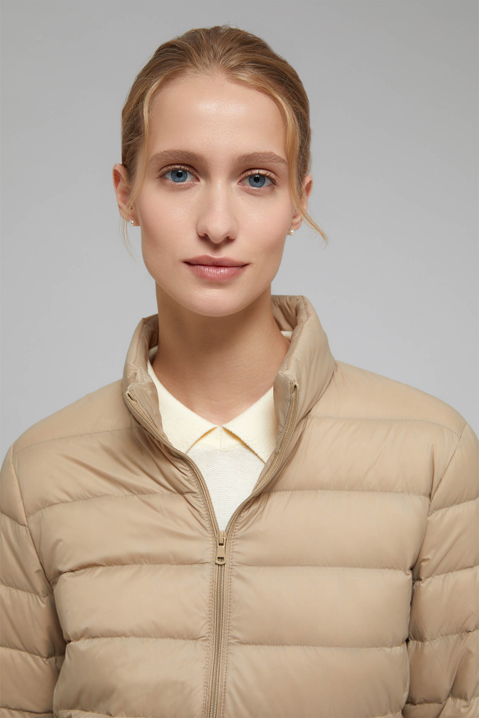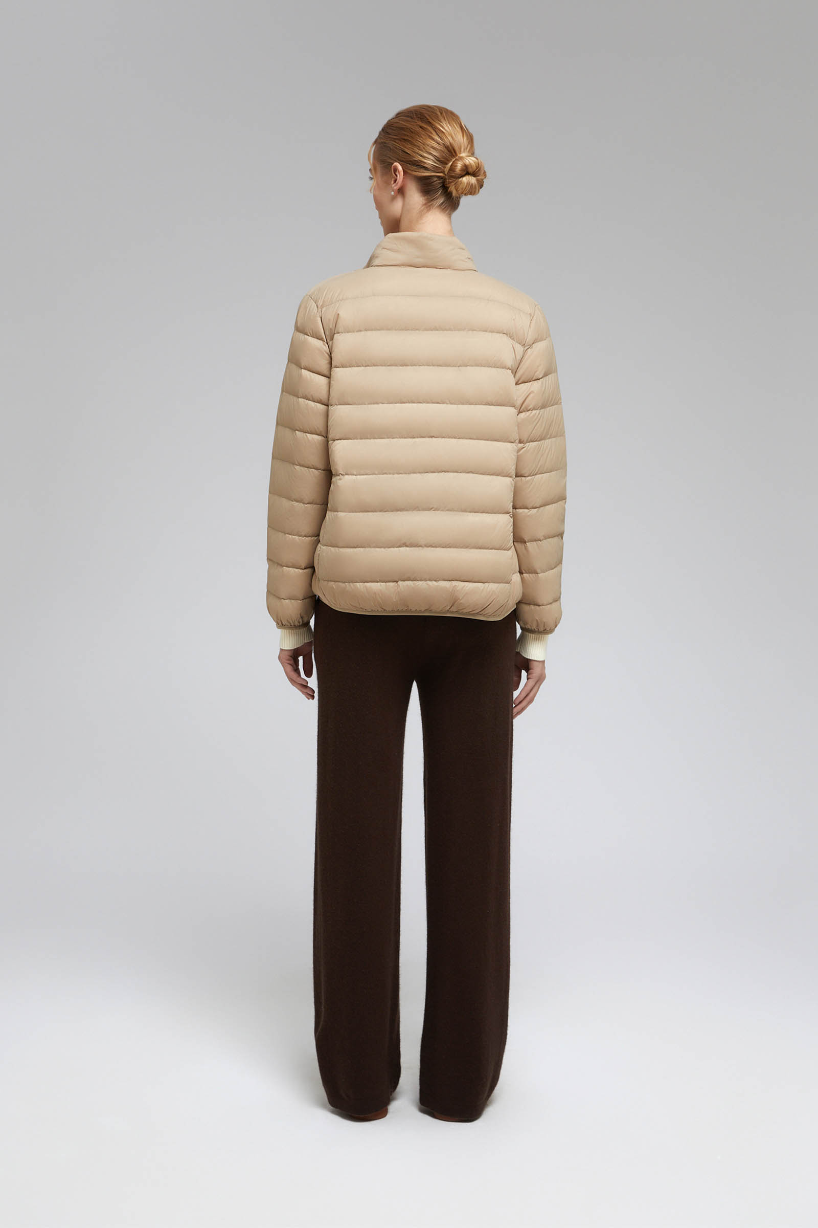 Стеганый пуховик с воротником-стойкой