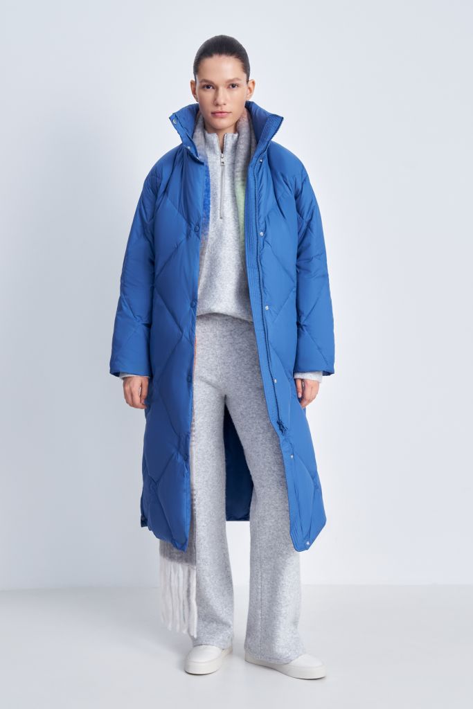 Удлиненный пуховик с натуральным пухом и термостежкой