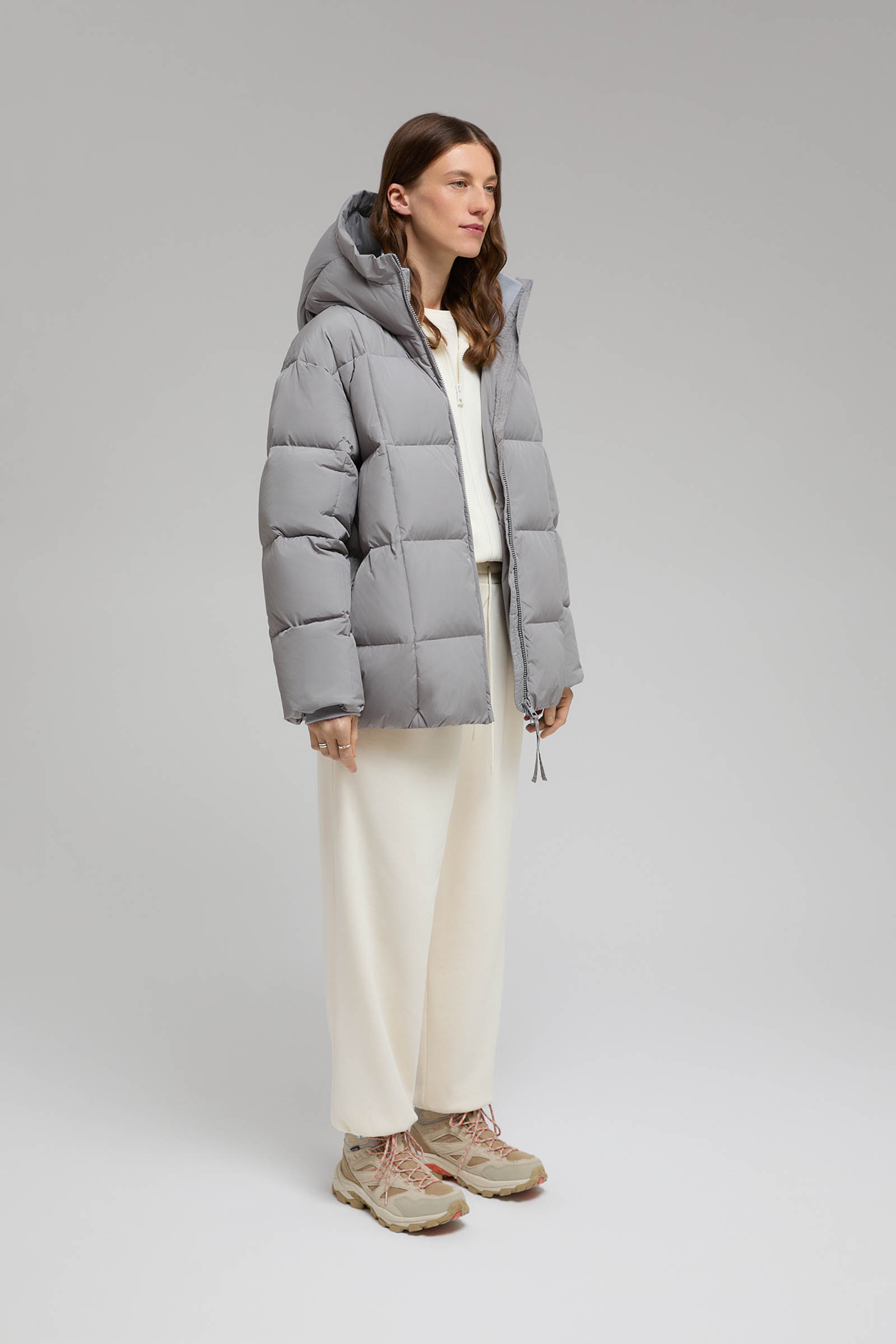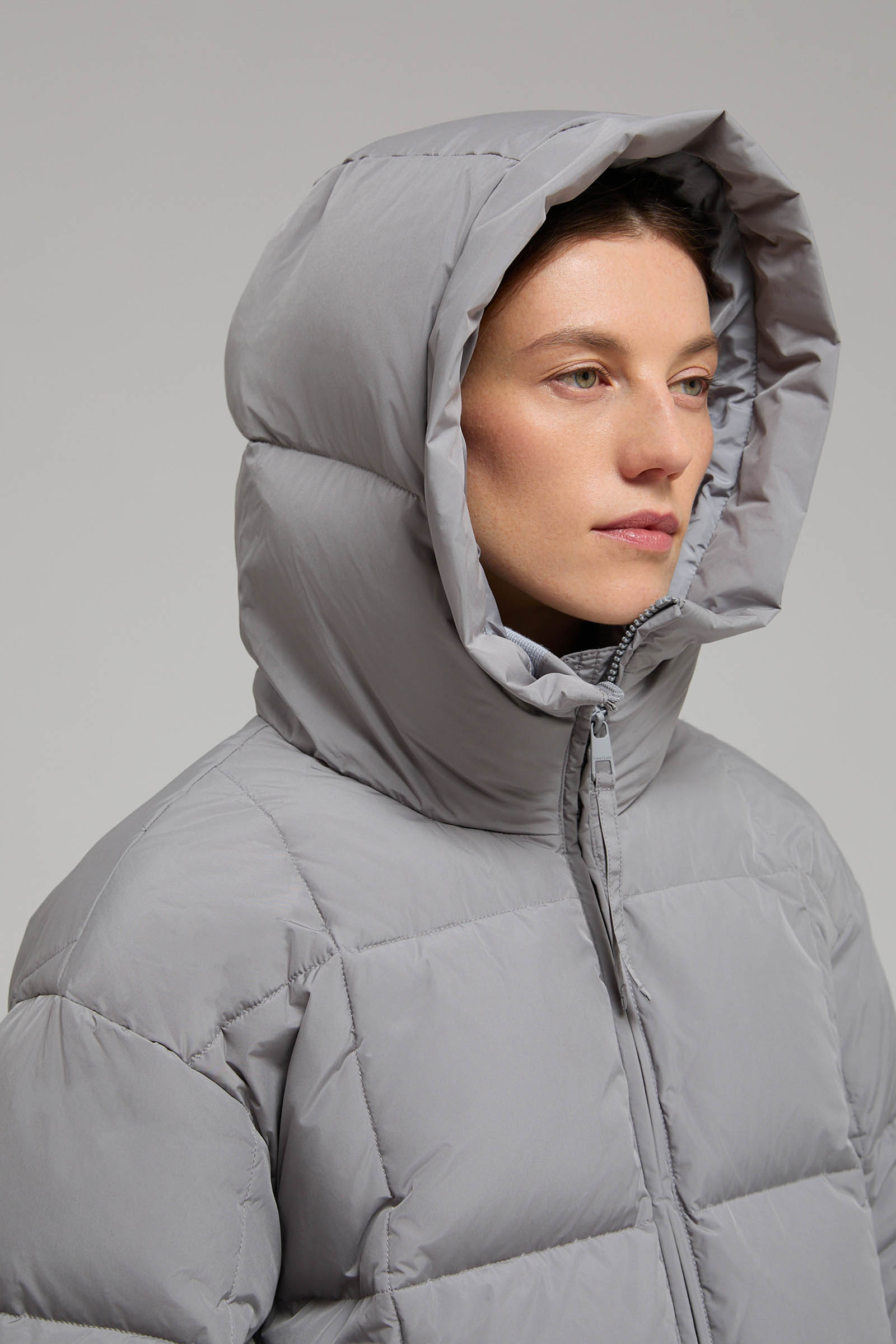 Удлиненный пуховик с натуральным пухом и термостежкой