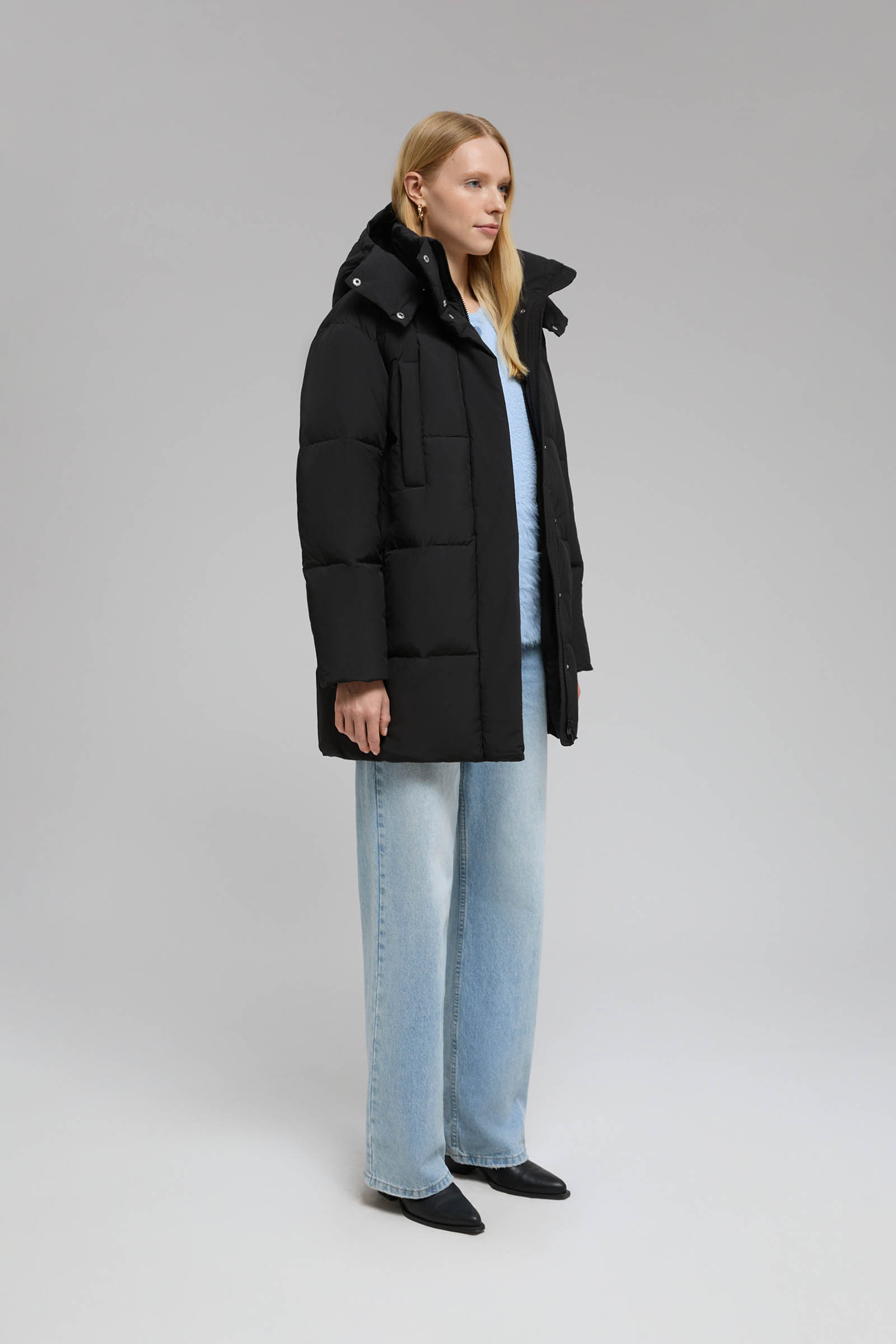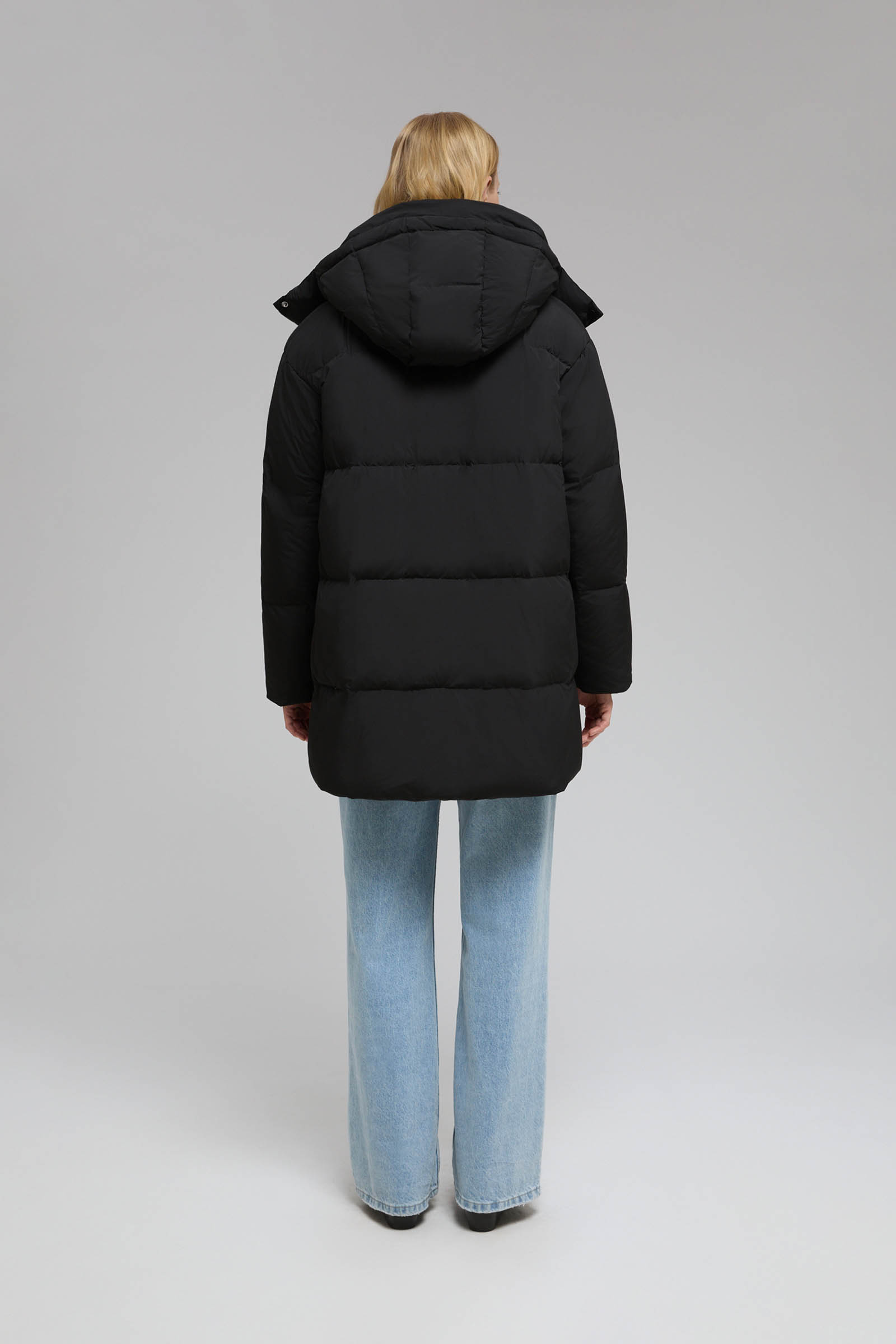 Удлиненный пуховик с натуральным пухом и термостежкой