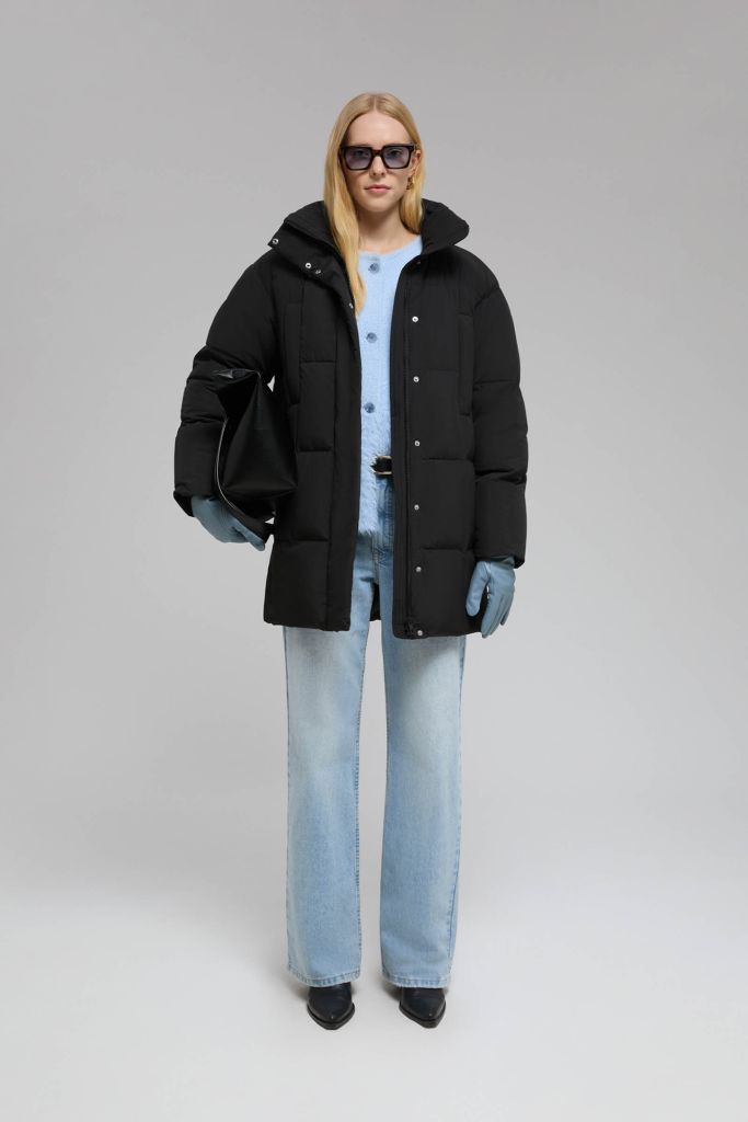 Стеганый пуховик с воротником-стойкой