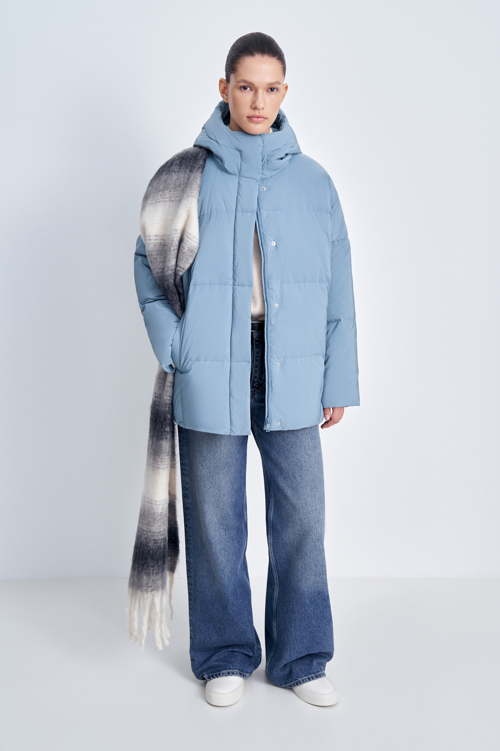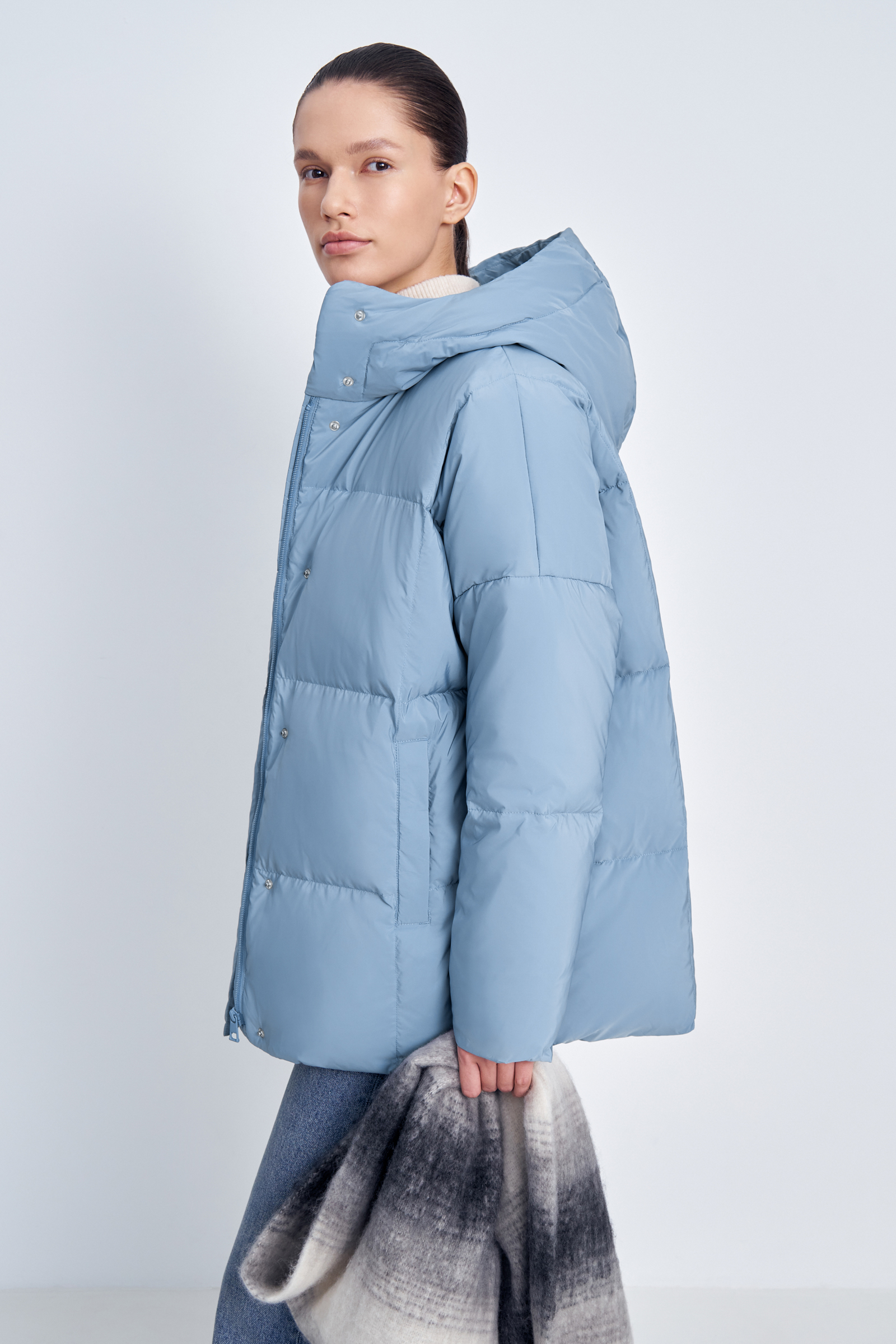 Пуховик с капюшоном и воротником-стойкой