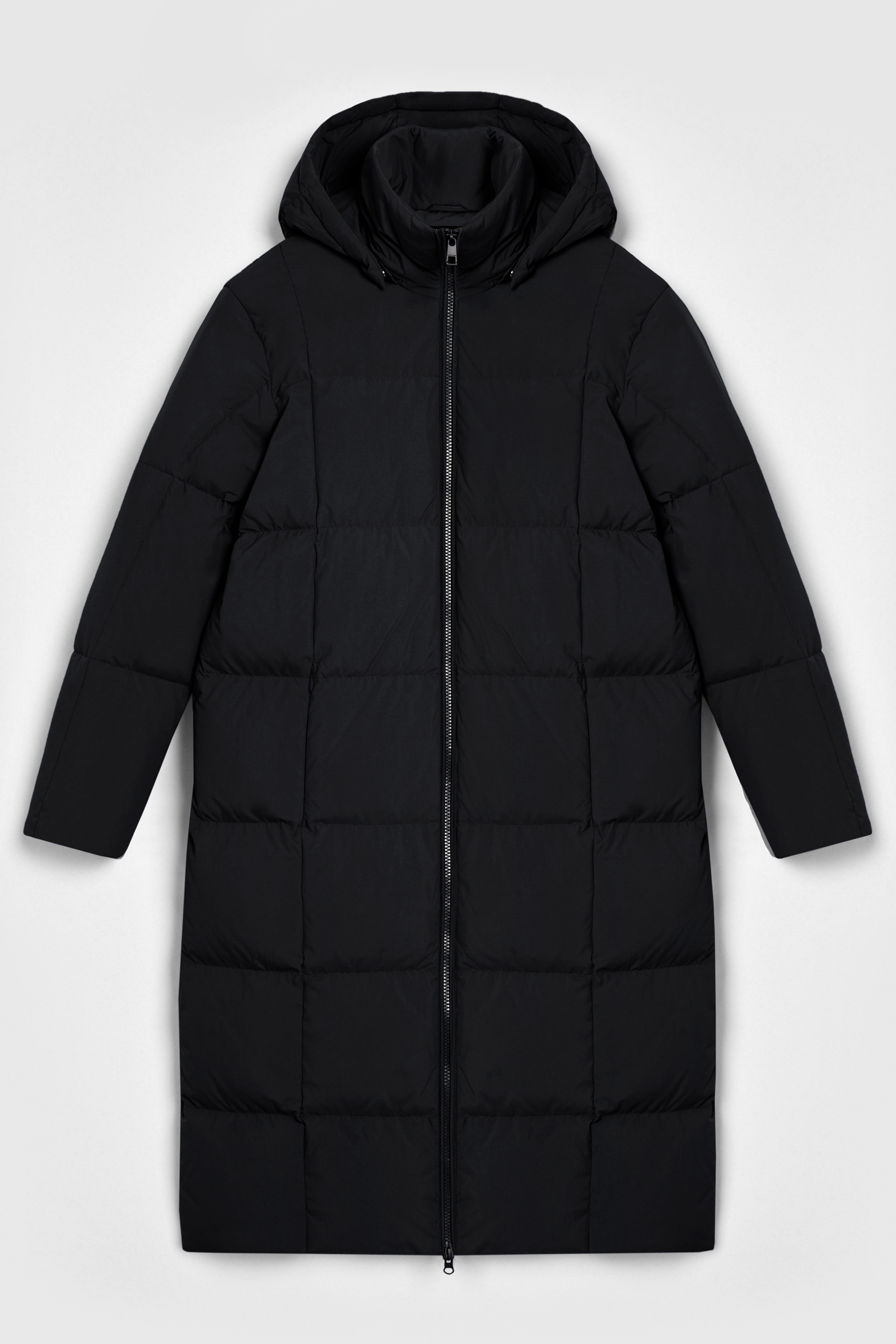 Удлиненный пуховик с капюшоном