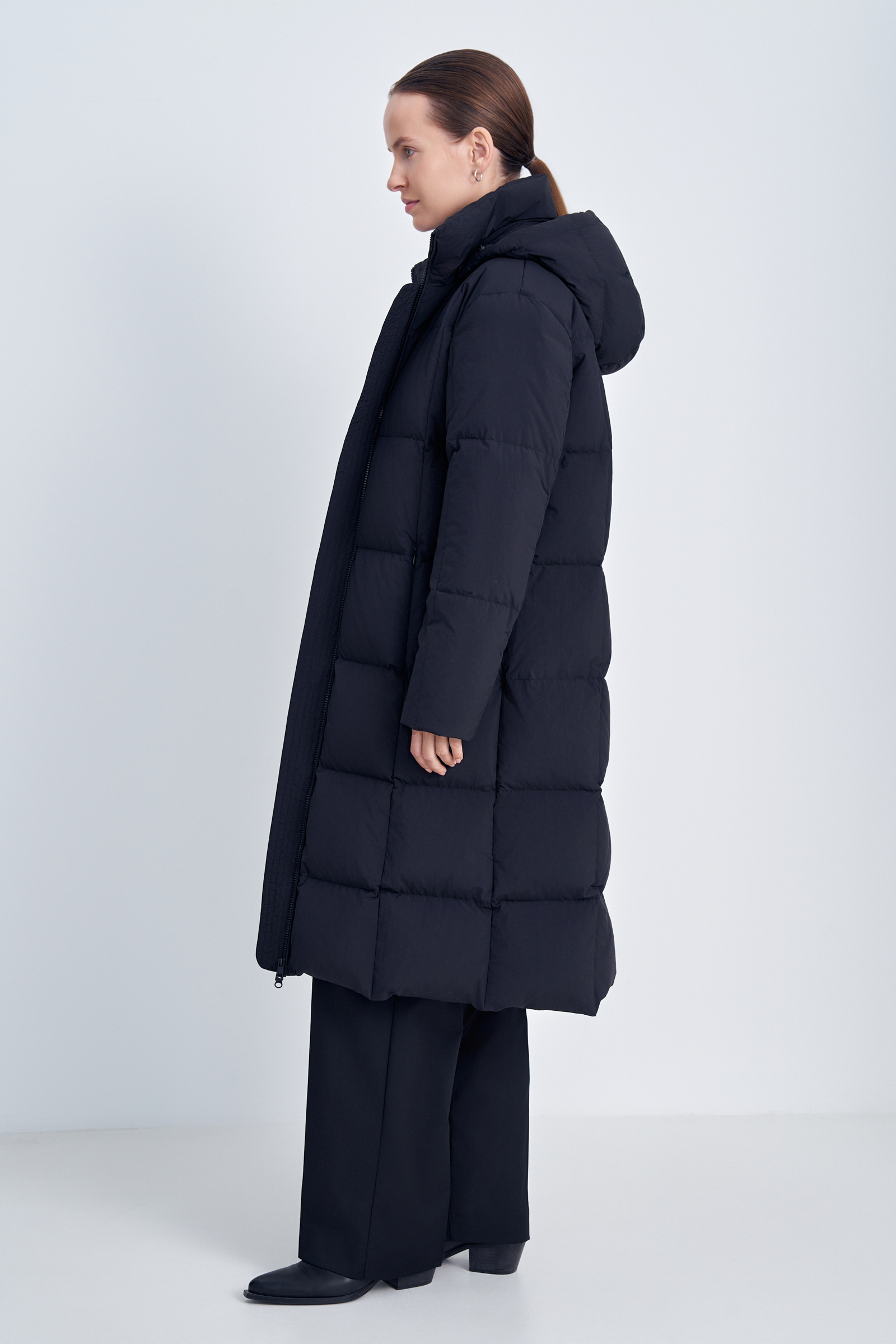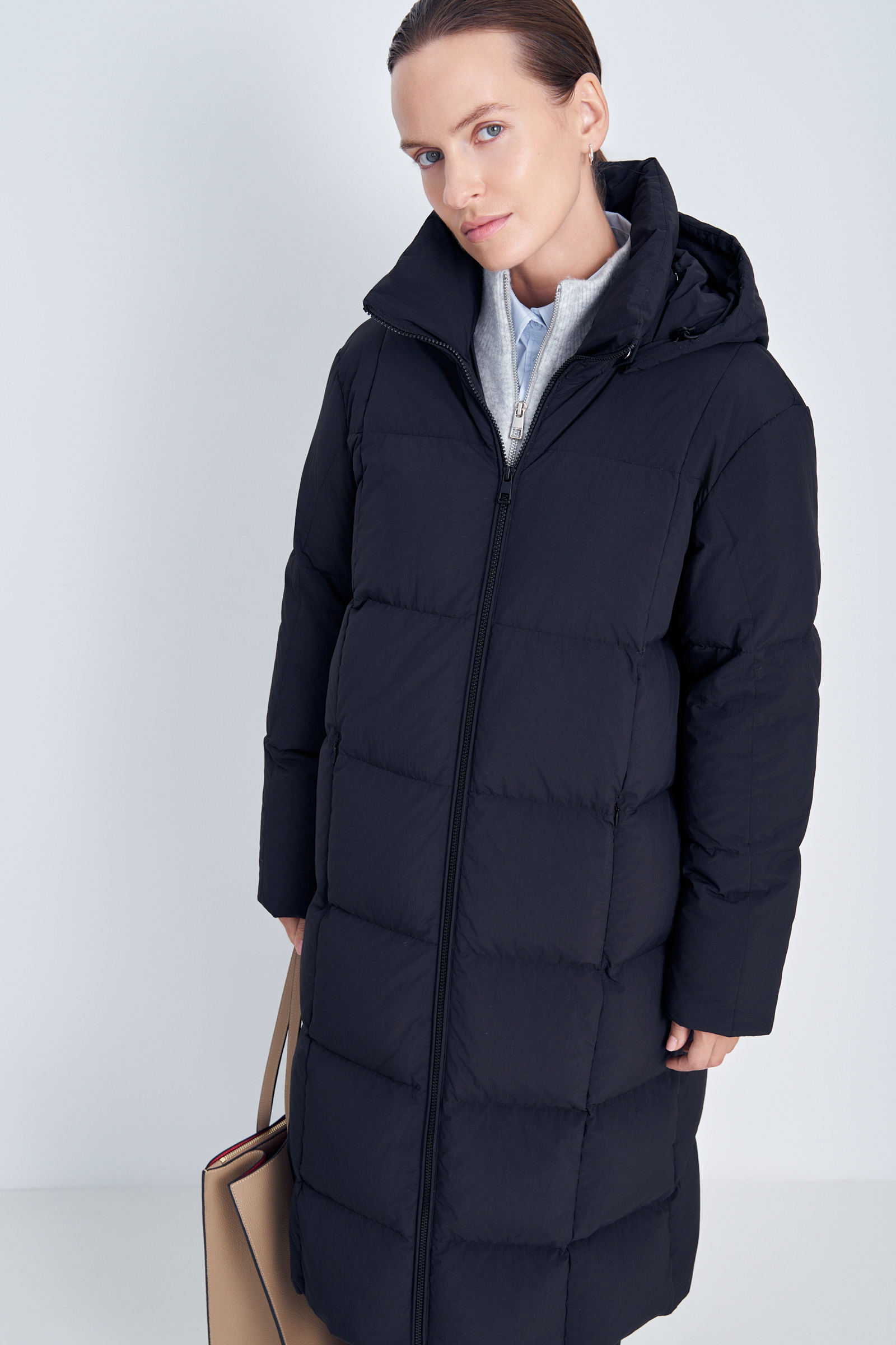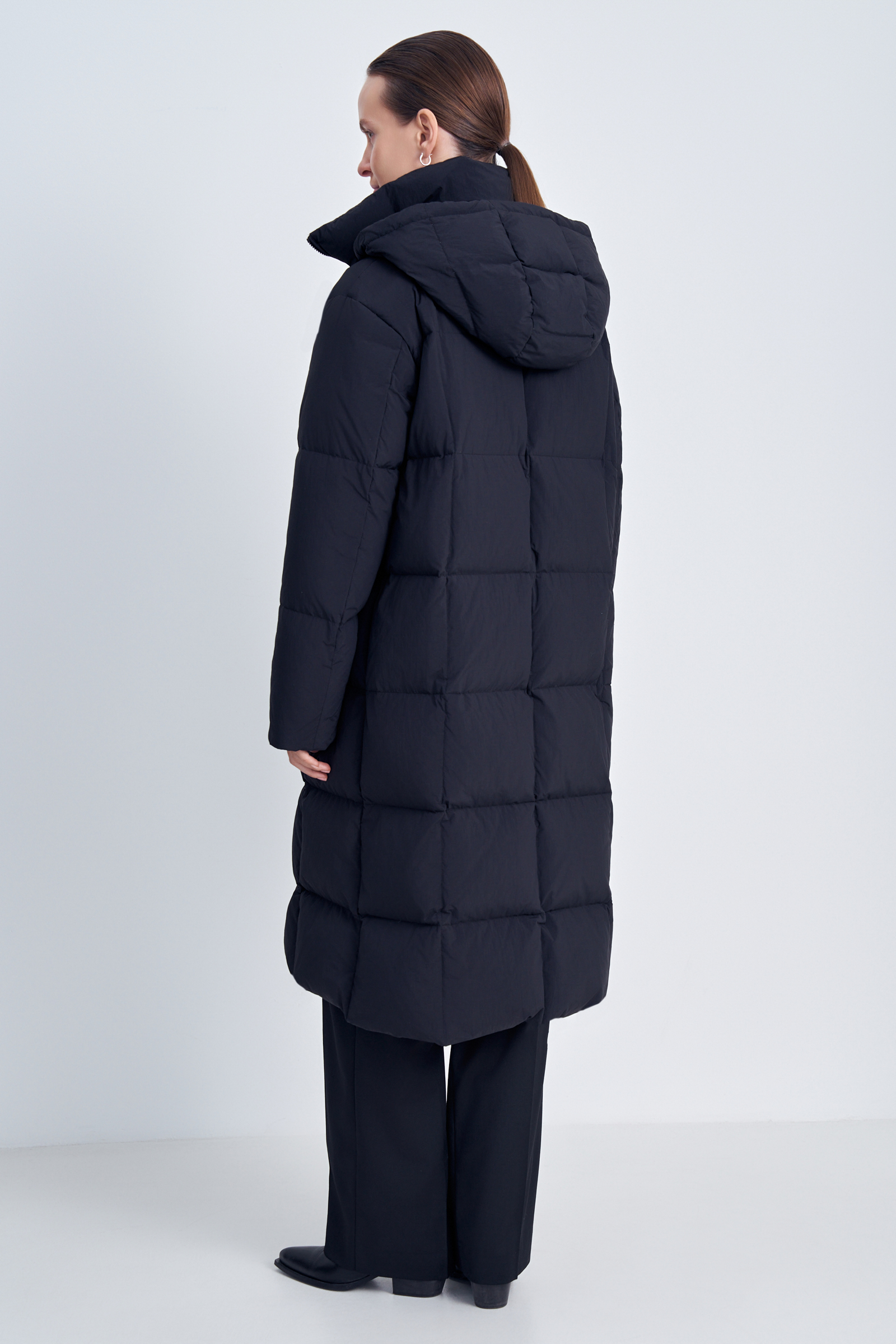 Пуховое пальто прямого силуэта