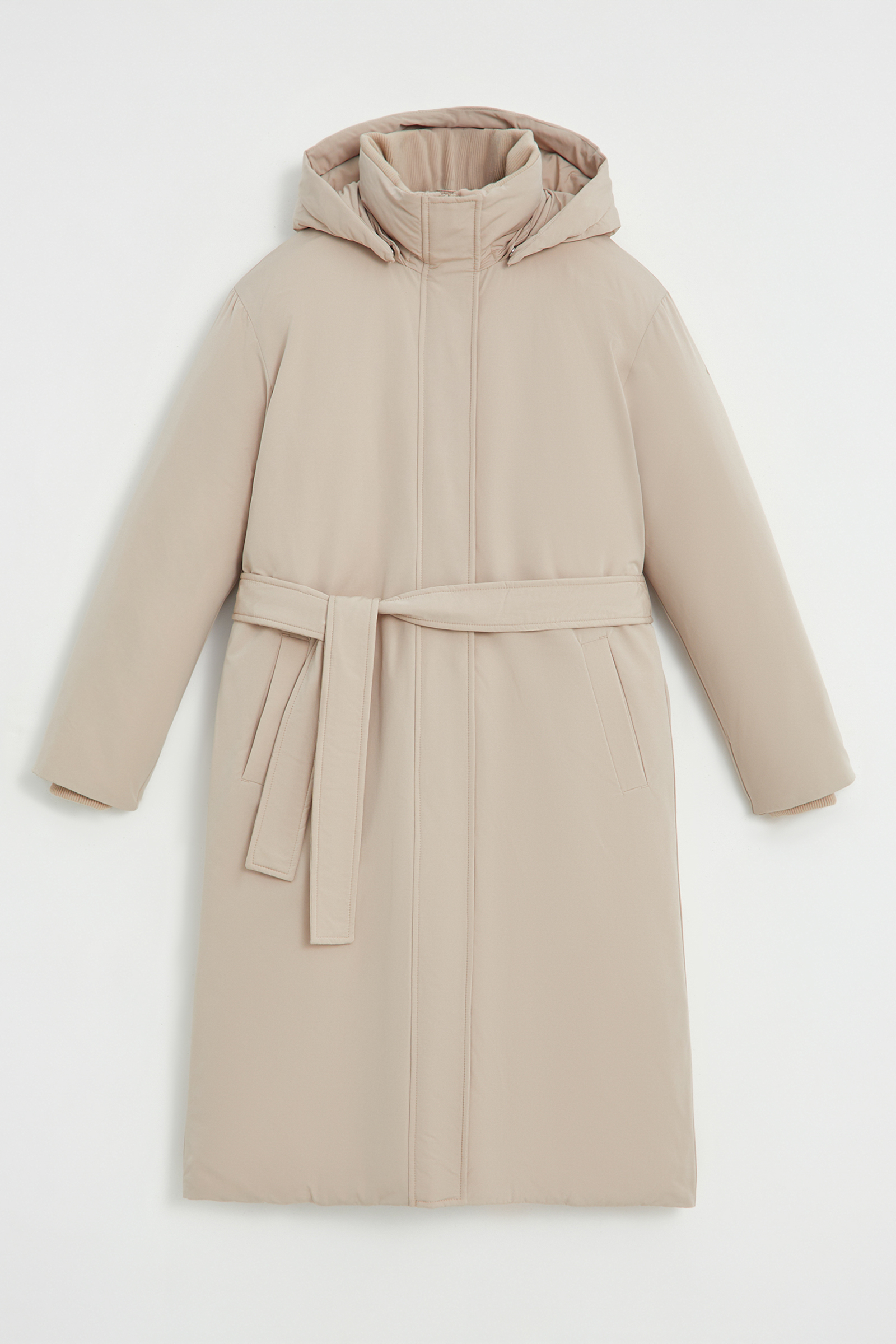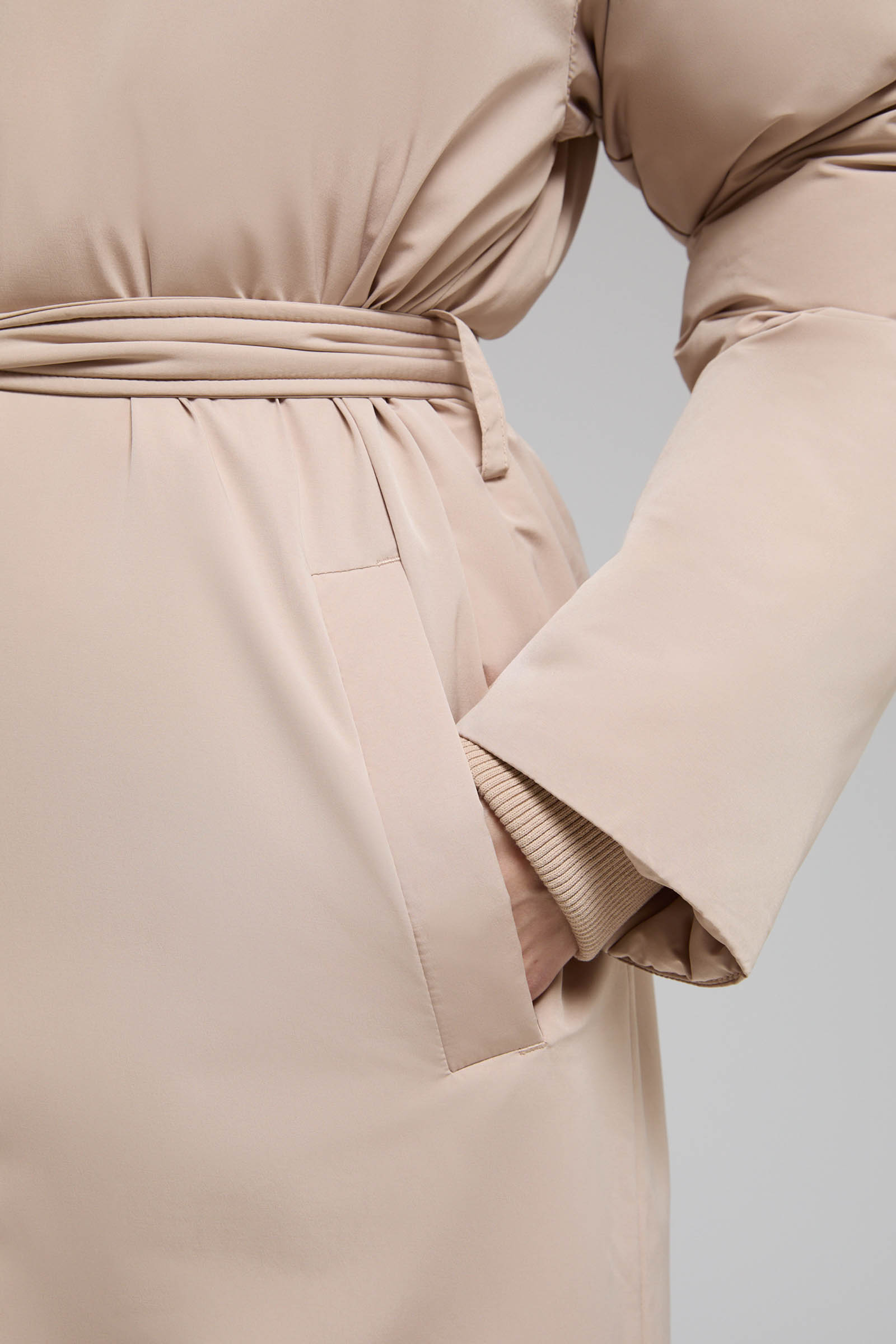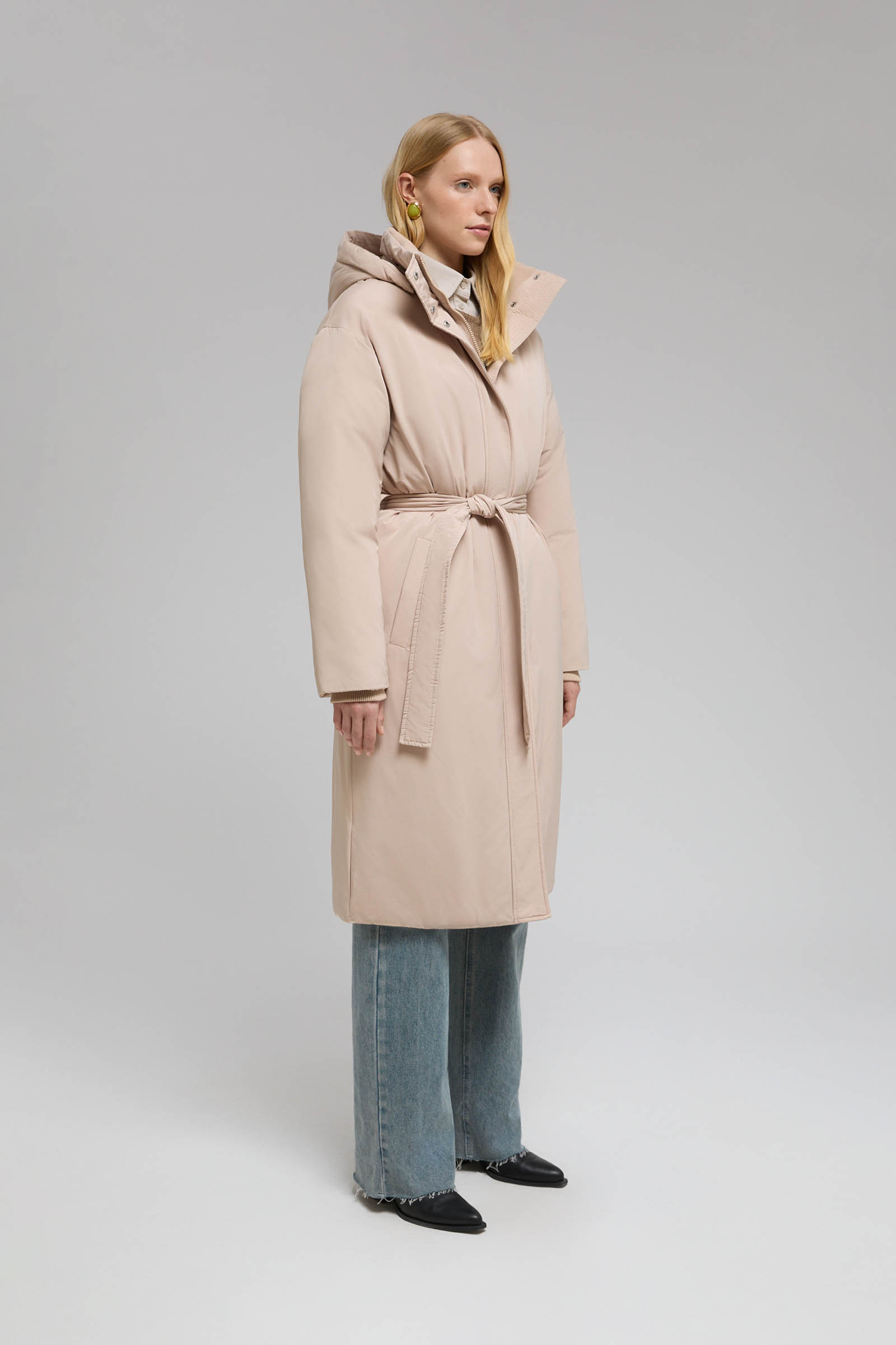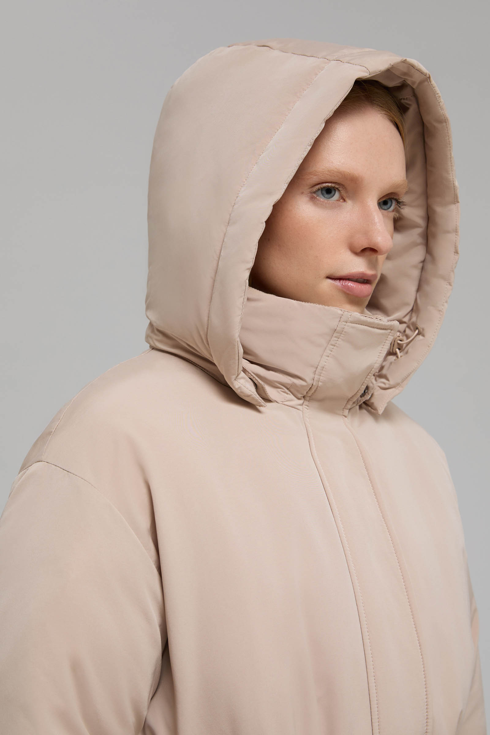 Удлиненный пуховик с натуральным пухом и термостежкой