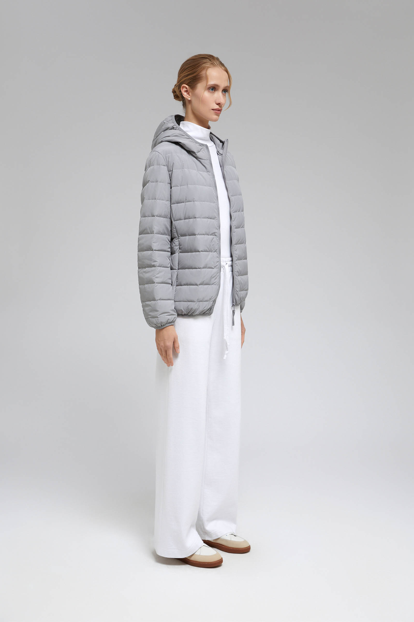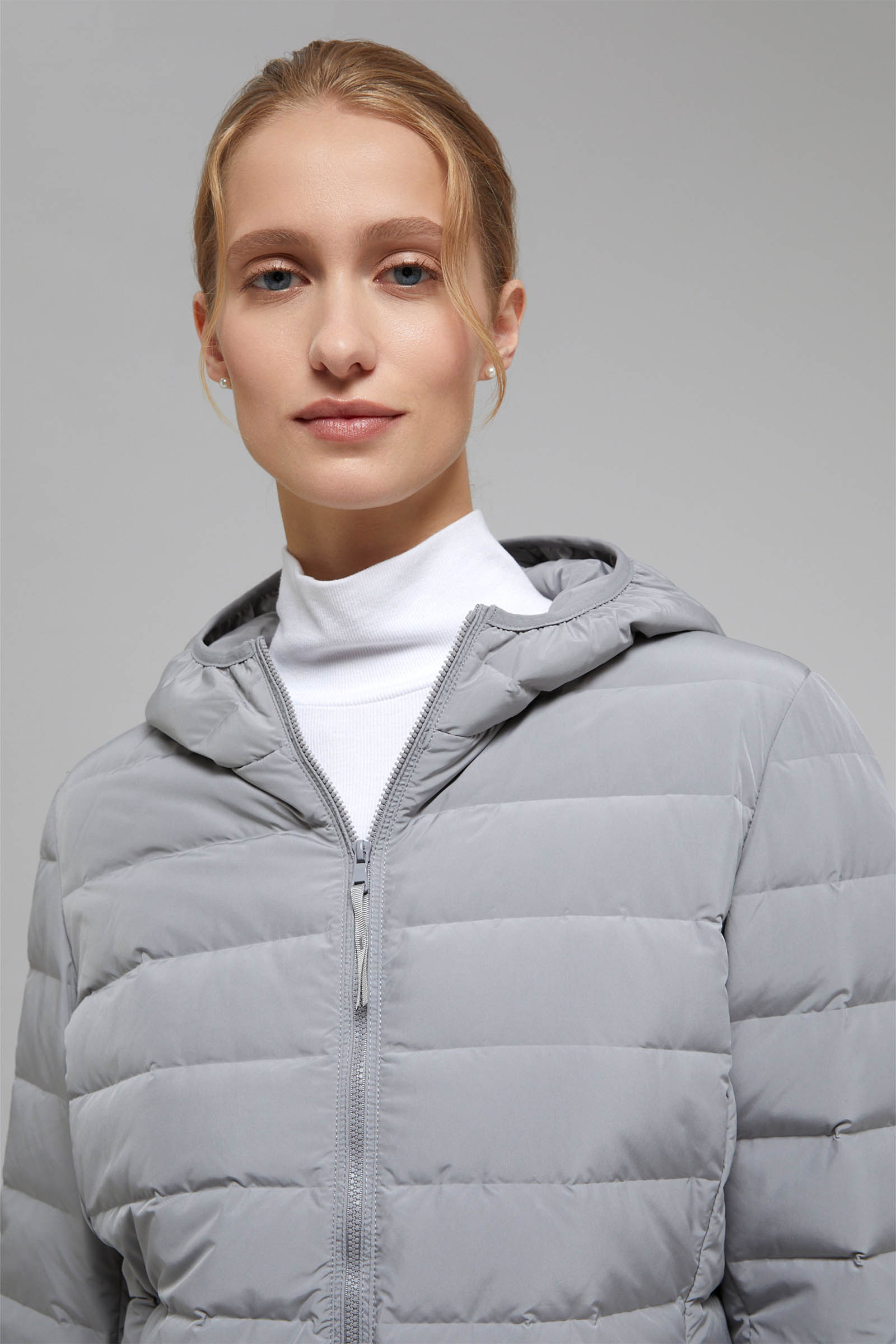 Пуховик с воротником-стойкой и съемным капюшоном