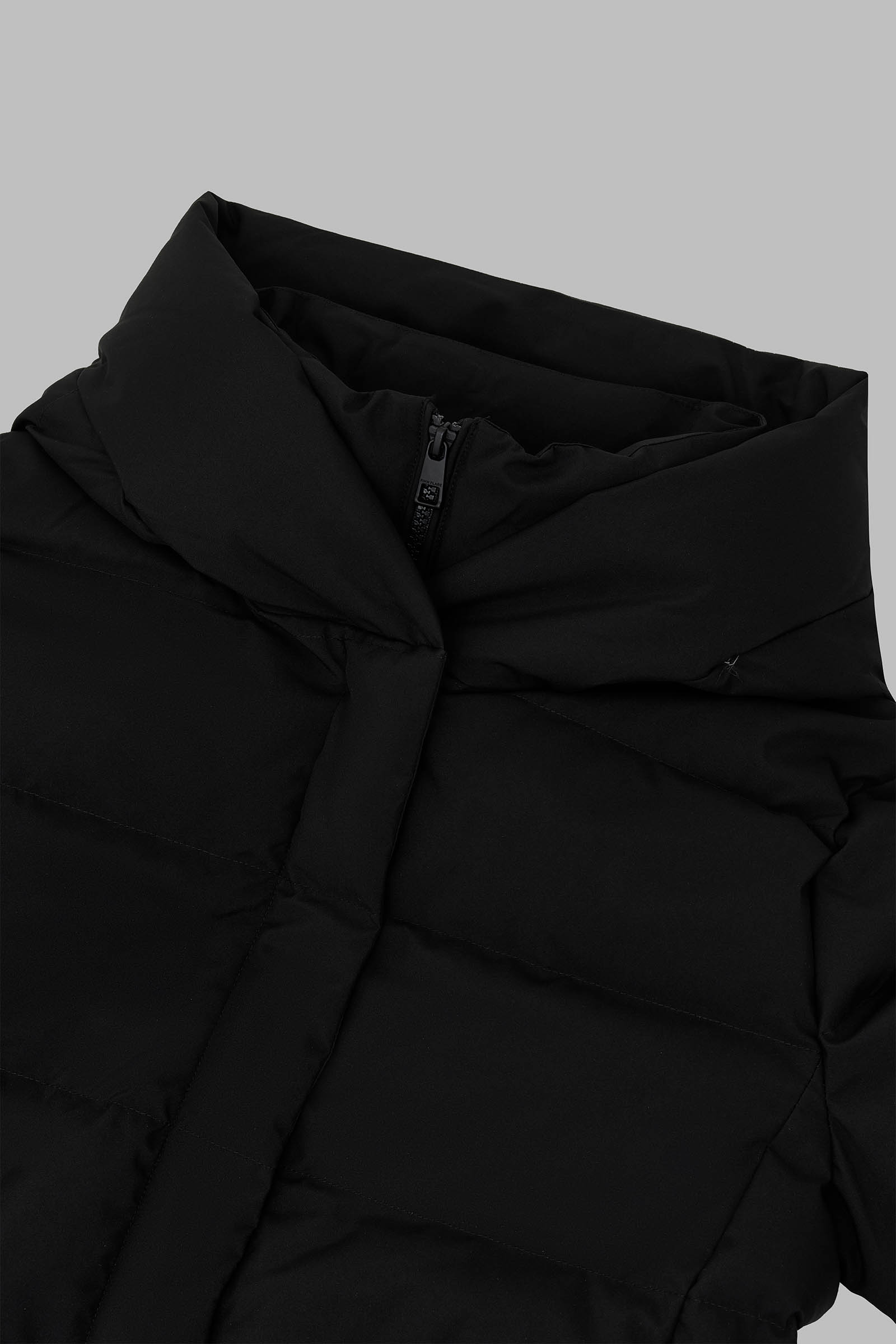 Пуховик с поясом приталенного силуэта