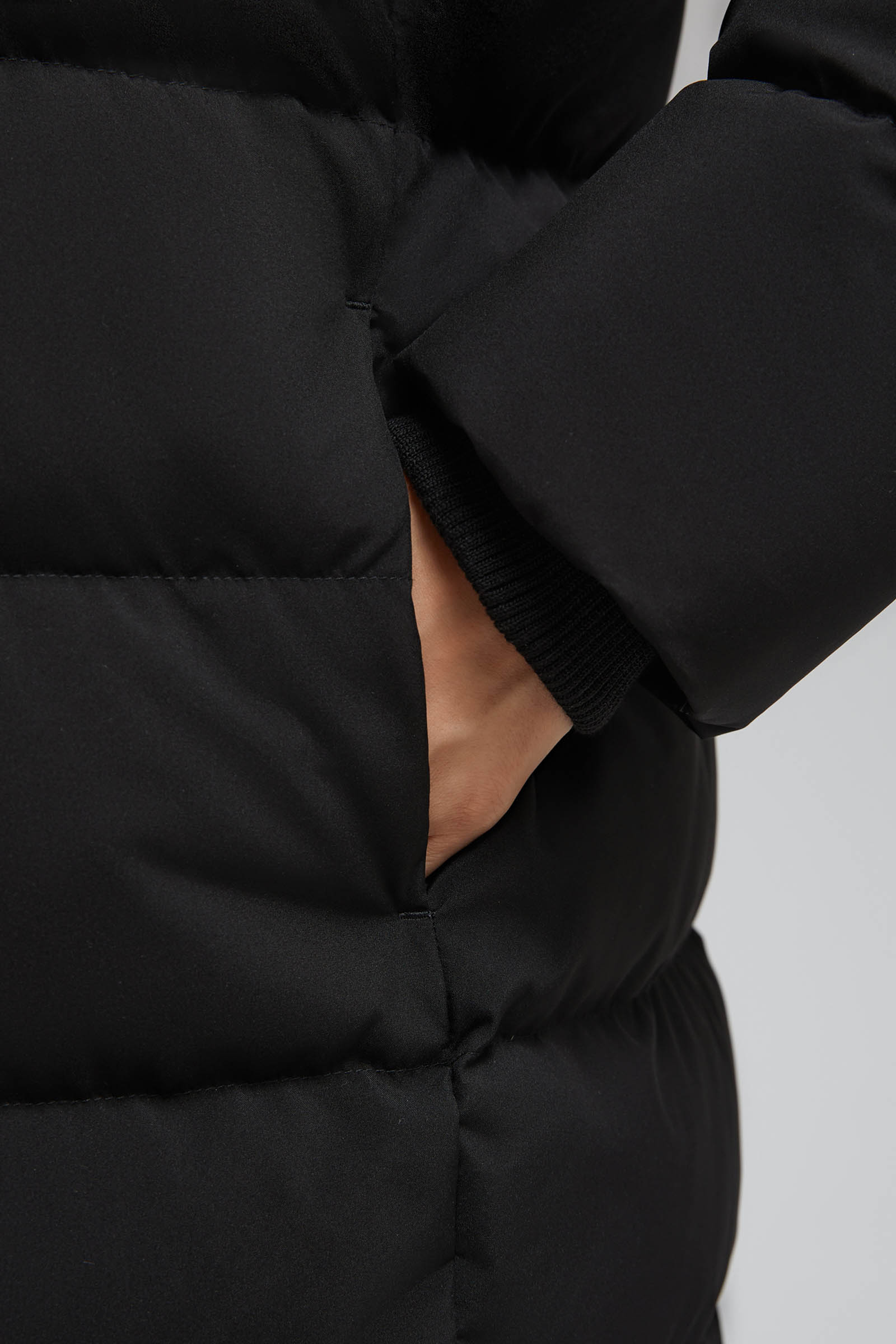 Удлиненный пуховик с натуральным пухом и термостежкой
