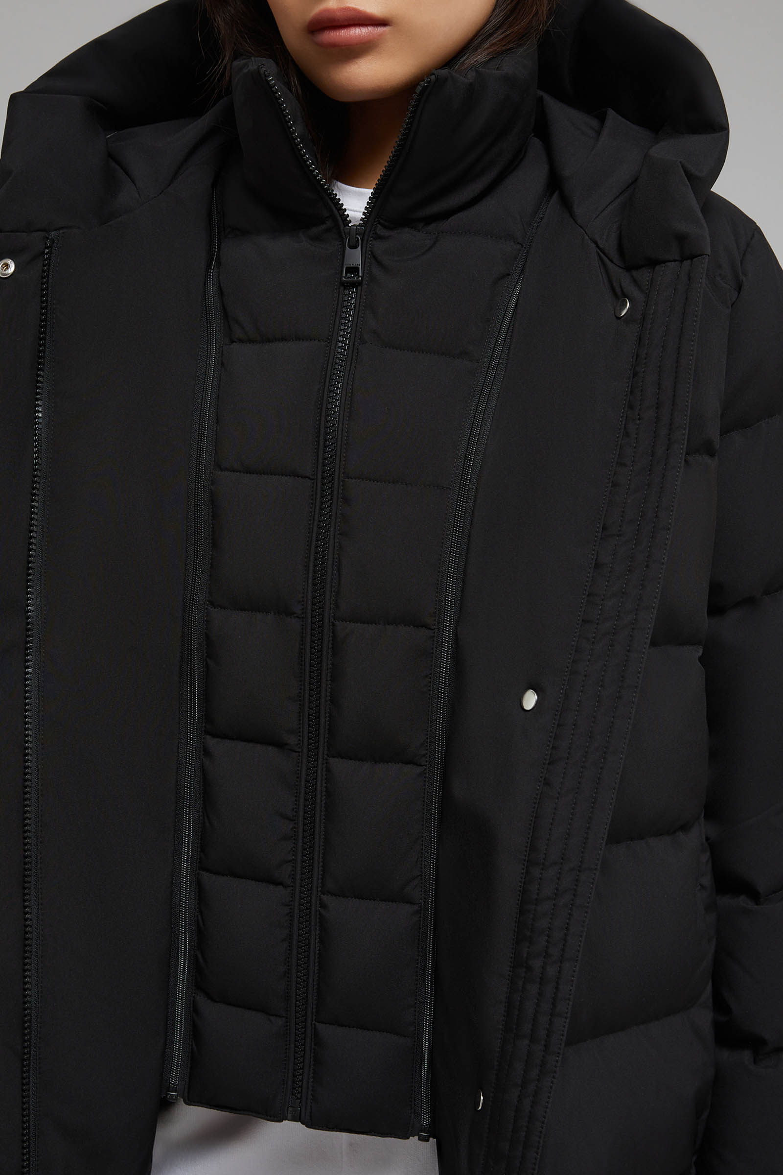 Пуховое полупальто с капюшоном