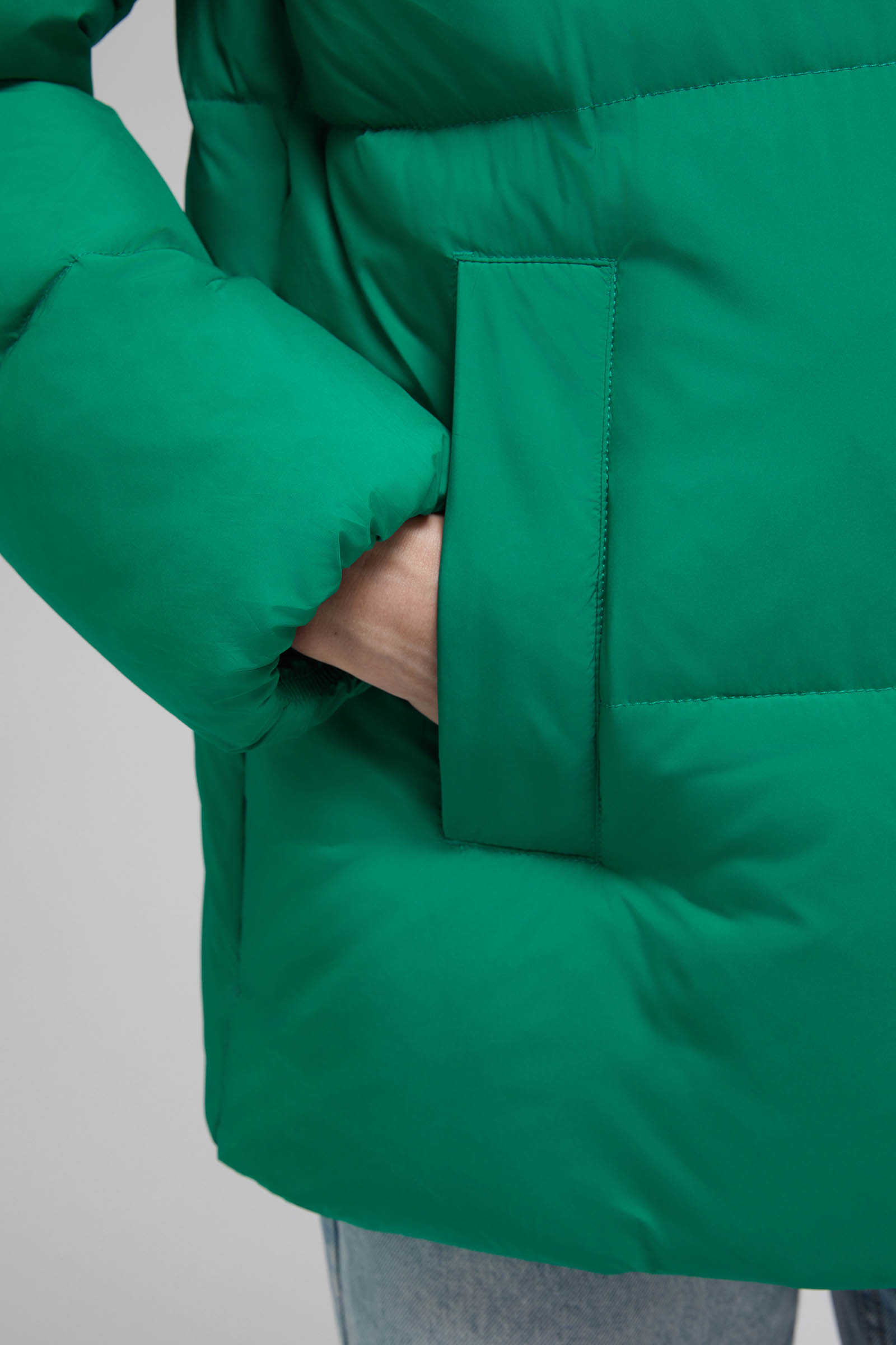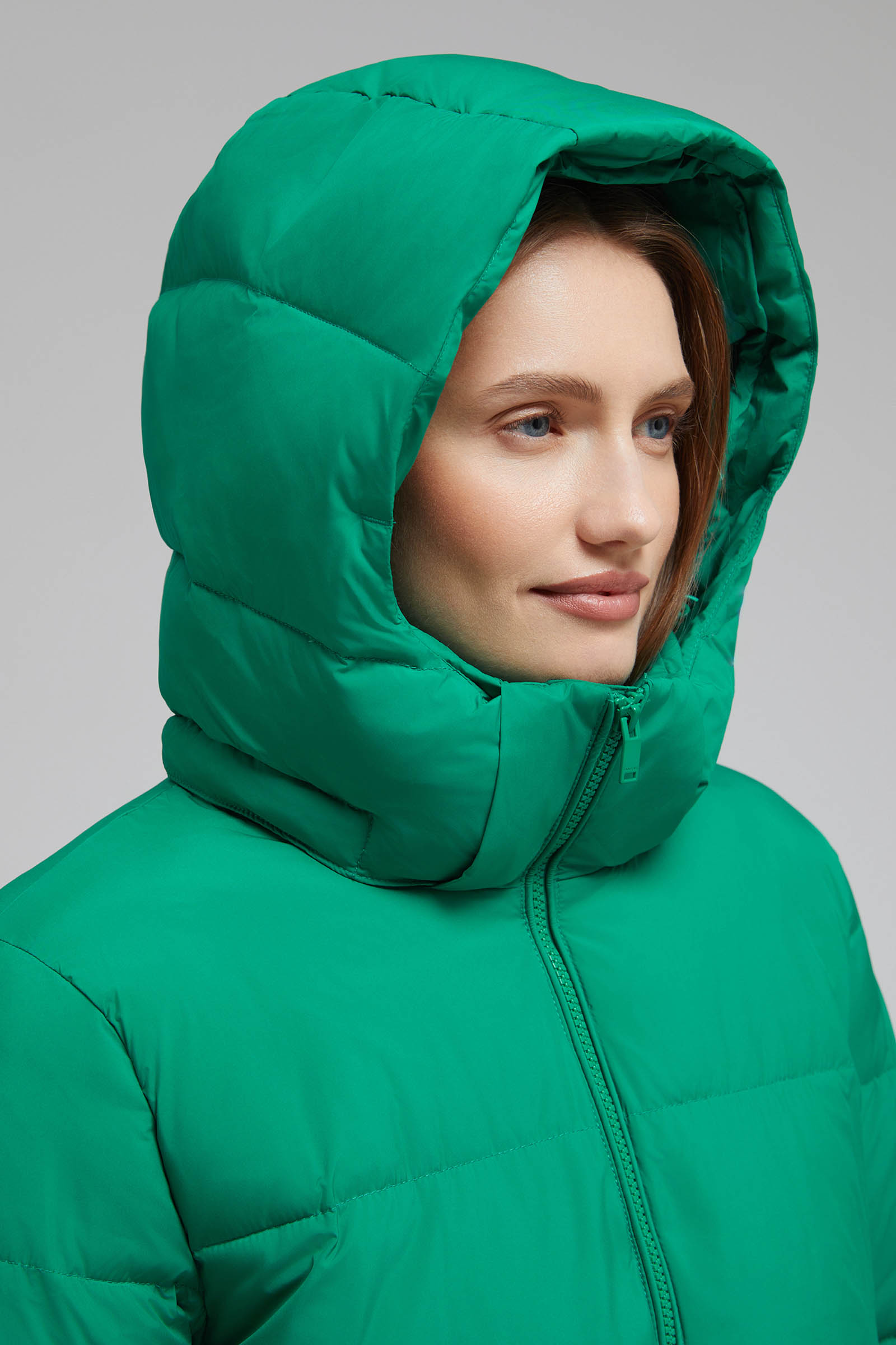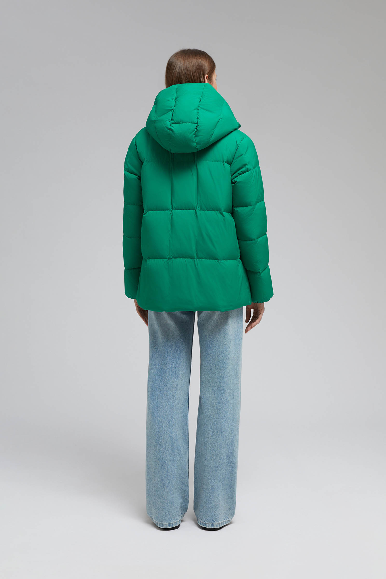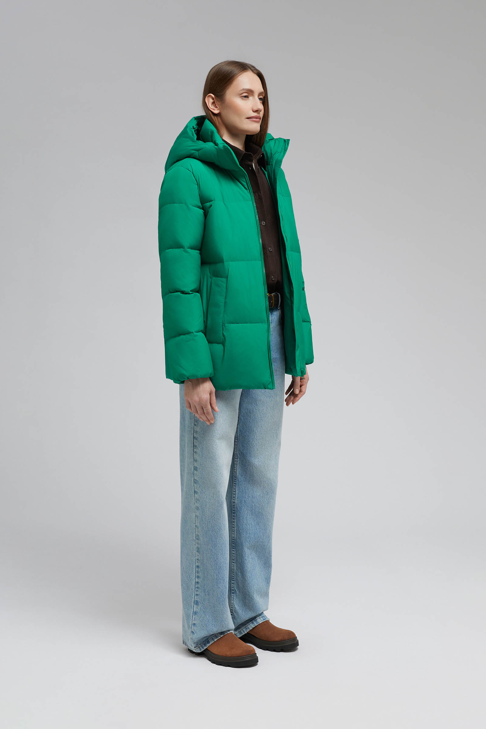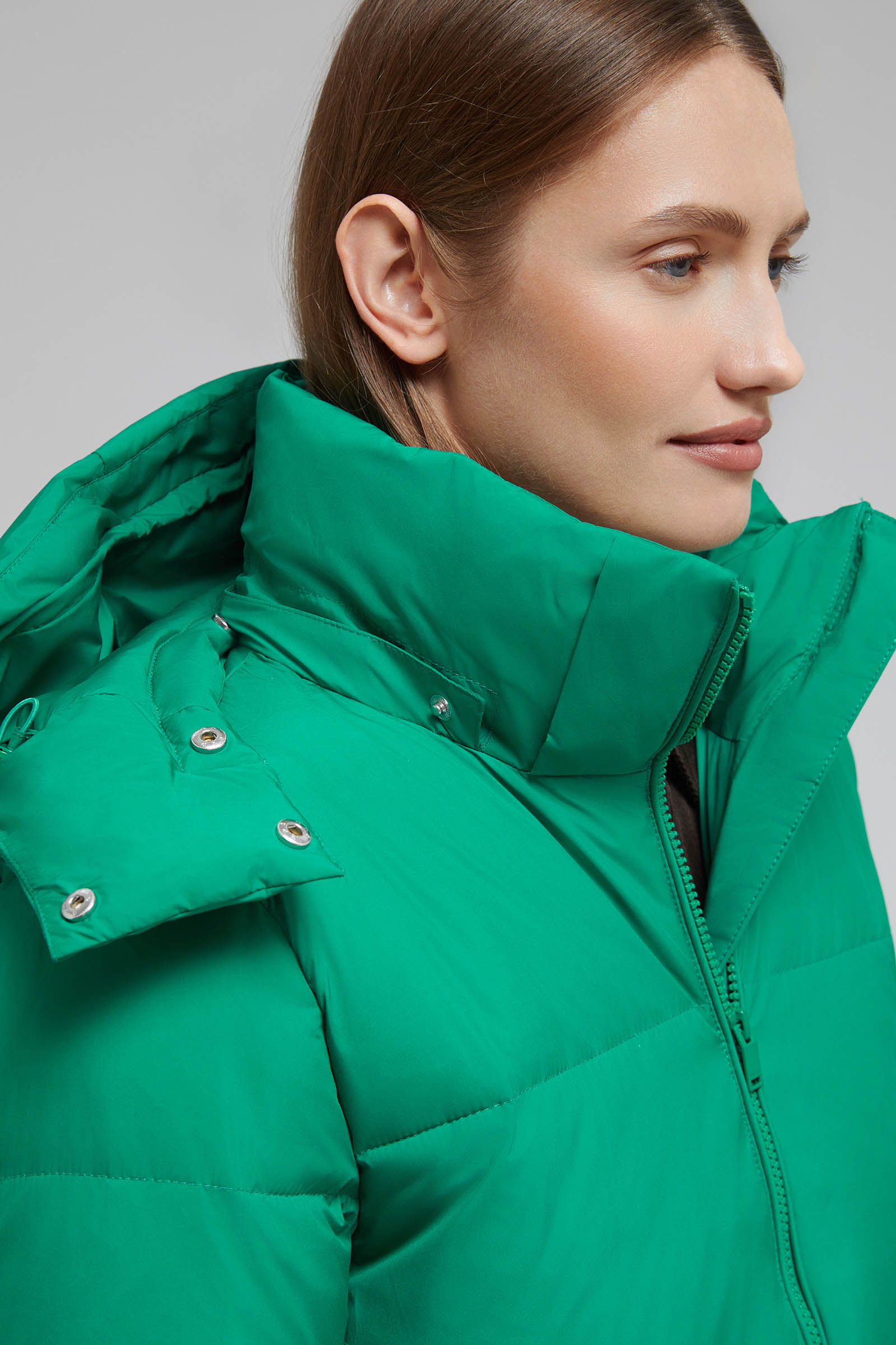 Пуховое полупальто с капюшоном